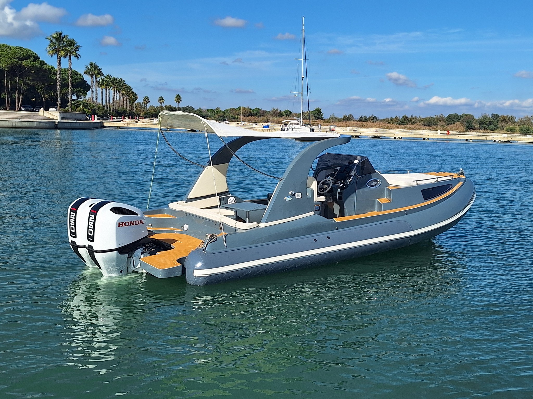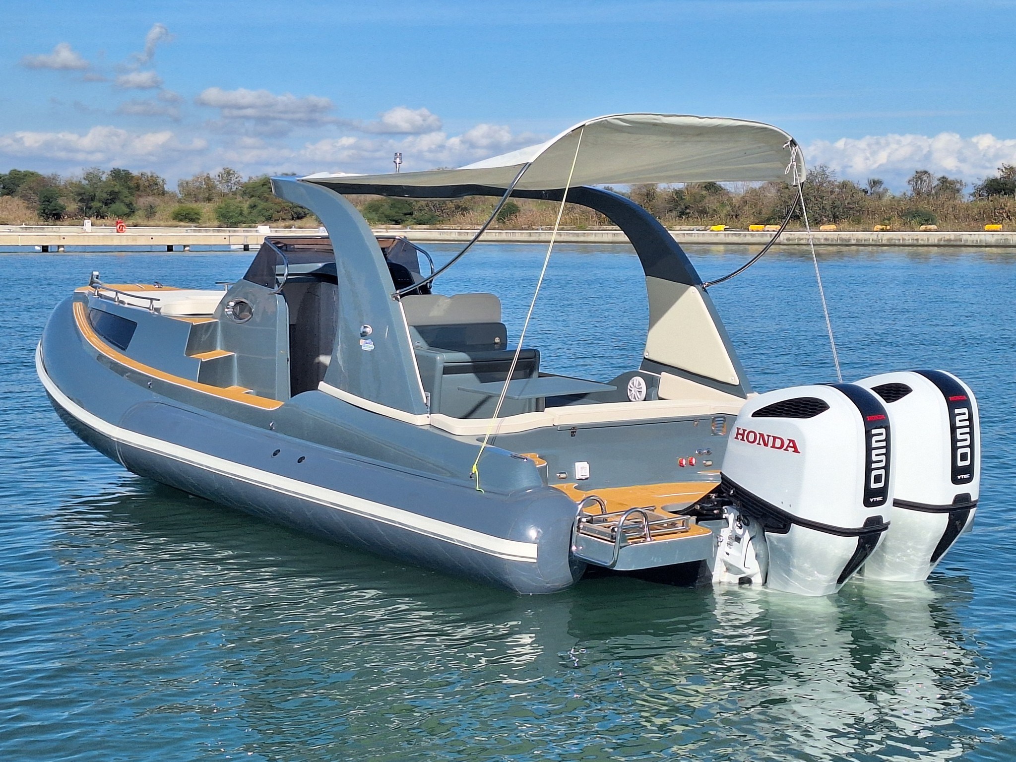 Thanks to its high-performance hull and two Honda BF250 engines, the Revenger 28.70 Zeus ensures brilliant acceleration and impeccable seaworthiness.