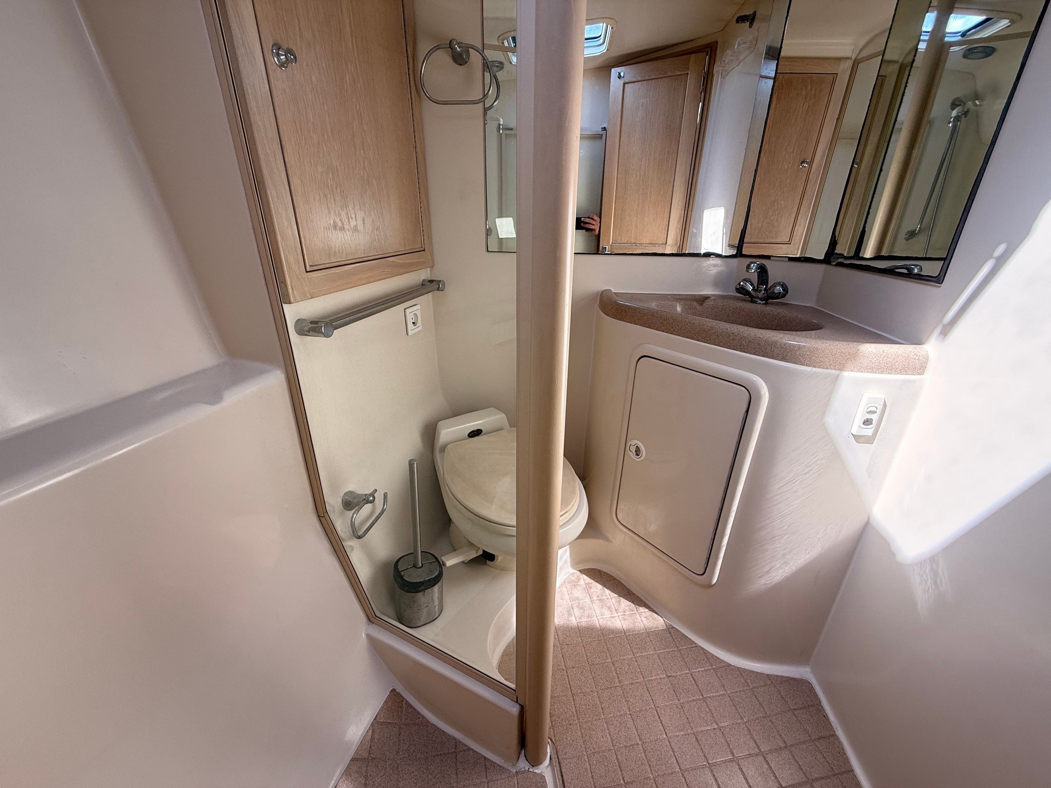 Anchor (20 KG) 4 x Batteries ((1 SERVIZI 225 AH - 2 MOTORE 220 AH (2025) - 1 GENERATORE)) Battery charger Bilge Alarm cockpit table Courtesy Lights Deck Shower Electric Bilge Pump Electric Windlass Engine Alarm Entry door Fenders Gangway (IDRAULICA OPACMARE) Horn Hydraulic Flaps Manual Bilge Pump Platform Shore power cable Shorepower connector Special Colour (WRAPPING BLU) swimming ladder Washbasin in the cockpit Water pressure pump |