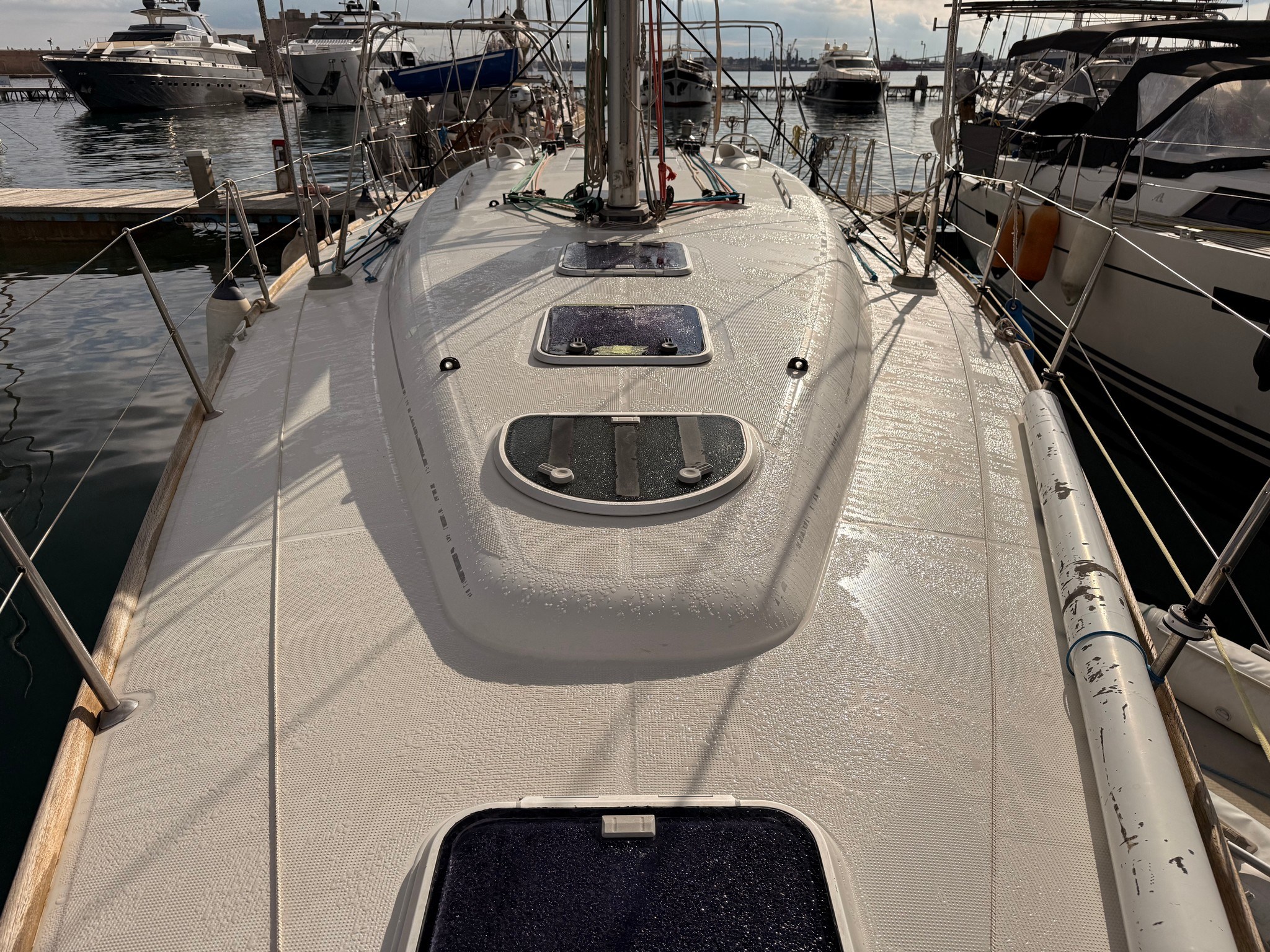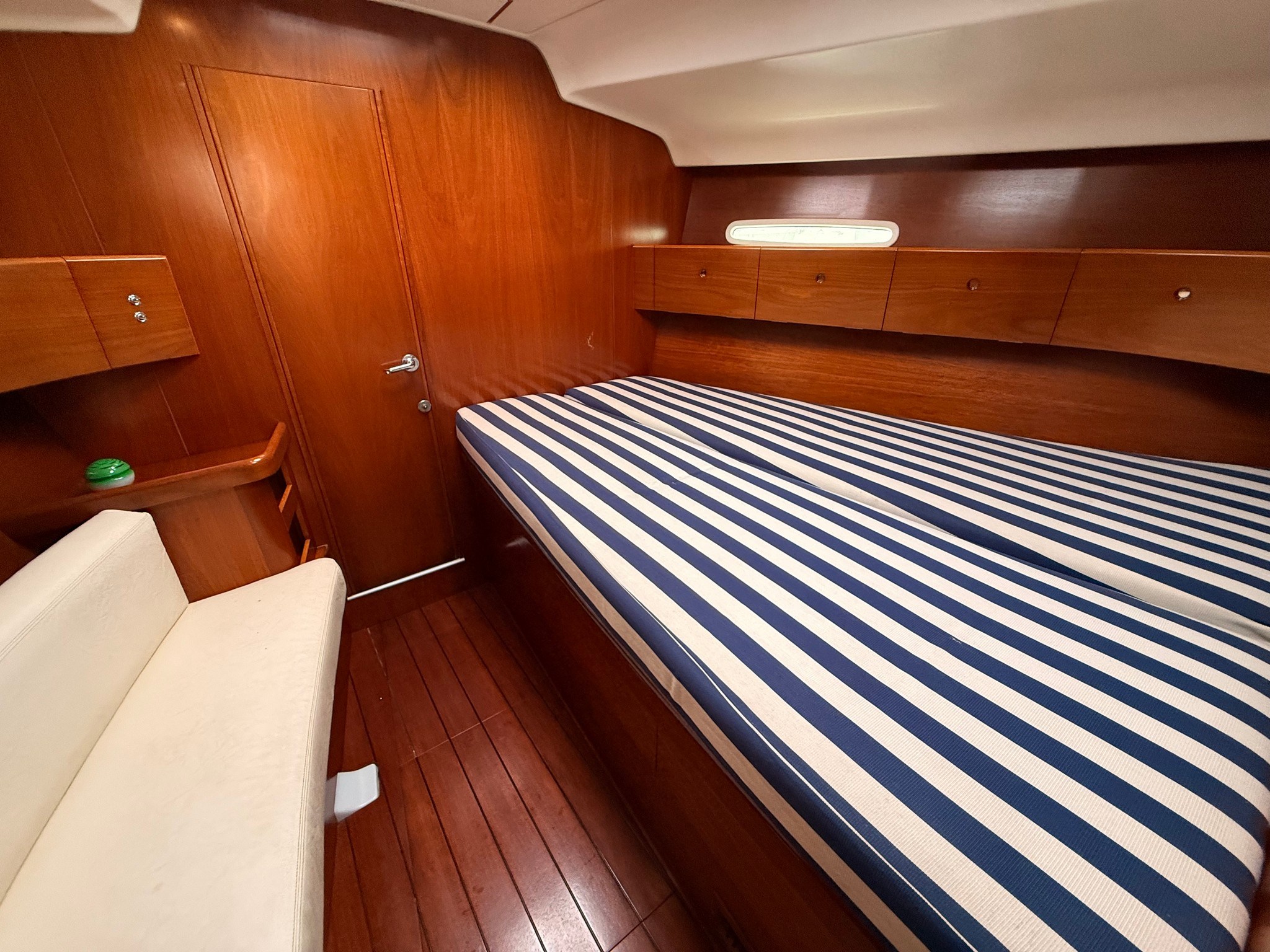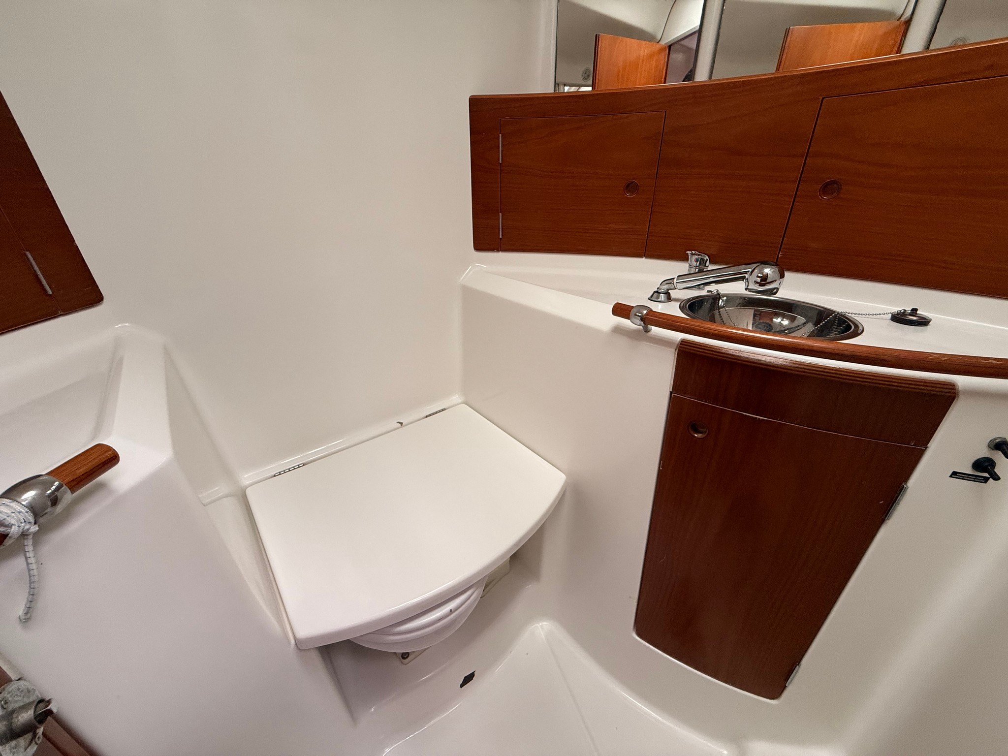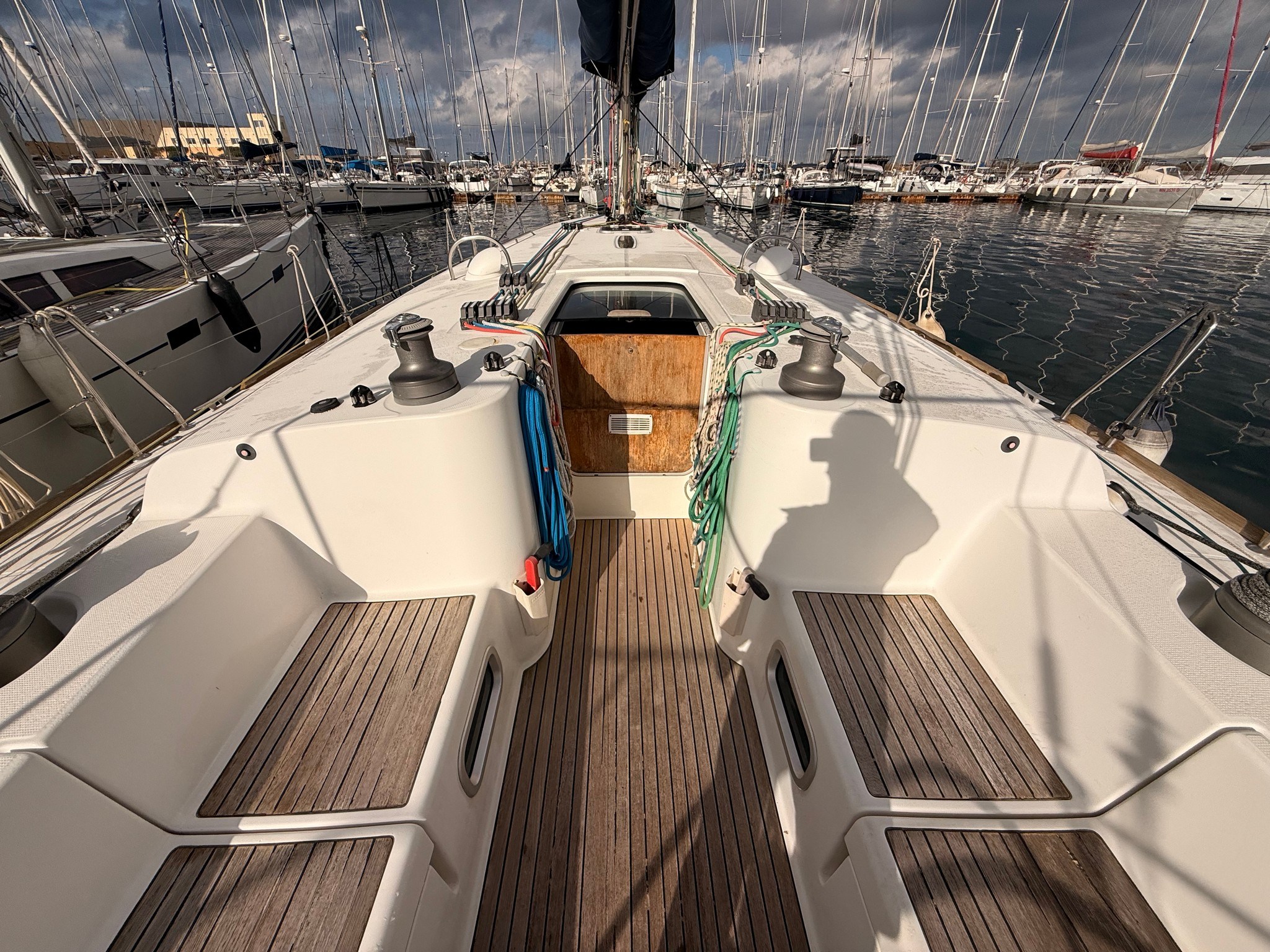 Anchor Batteries (4x 140 Ah) Battery charger Bilge Alarm Deck Shower Electric Bilge Pump Electric Windlass Entry door Fenders Gangway Living Room Foldable Table Manual Bilge Pump Rod rigging (2020) Shore power cable Shorepower connector Spare shaft swimming ladder Teak Cockpit Water pressure pump Winch Winch Electric |