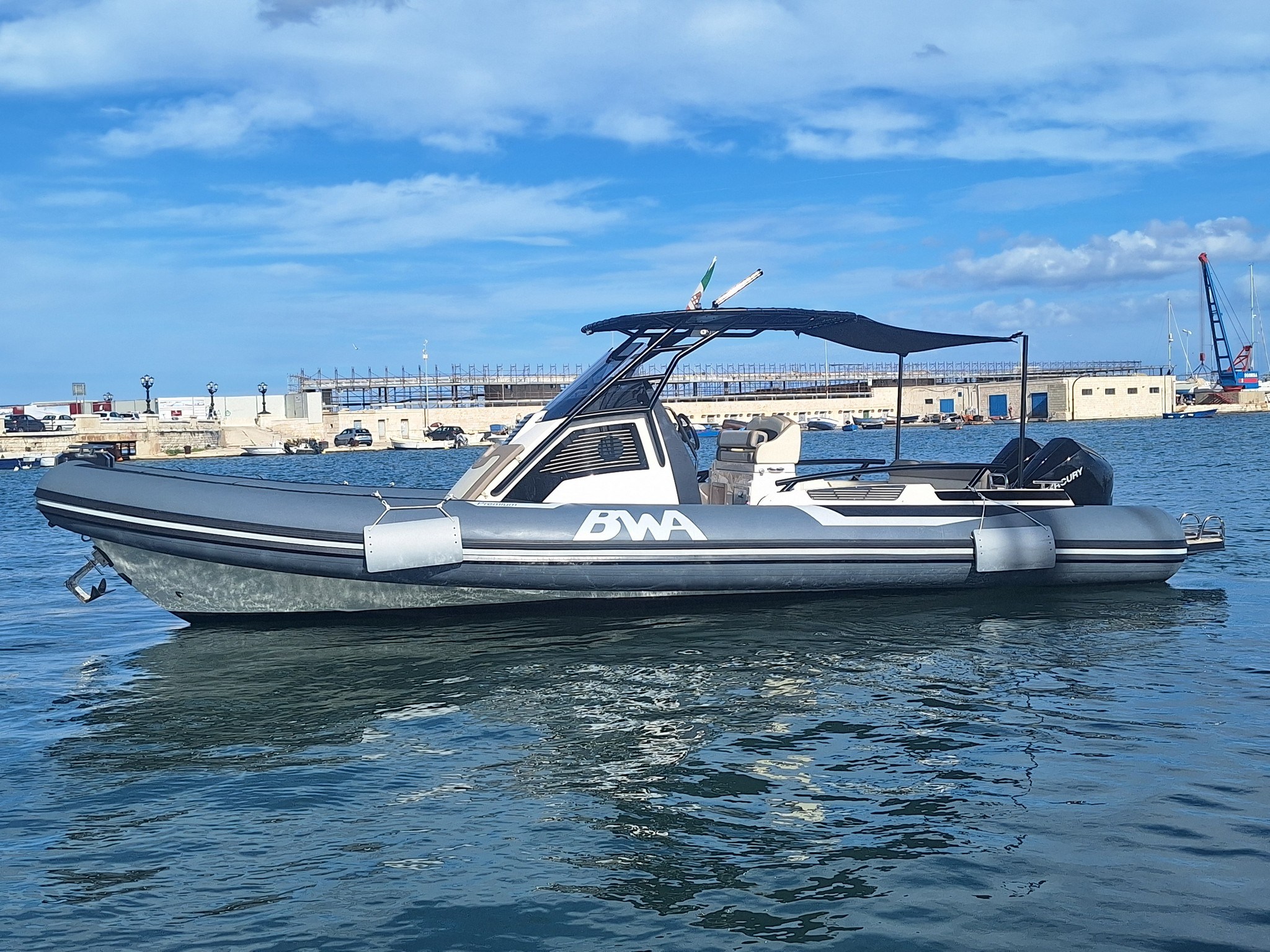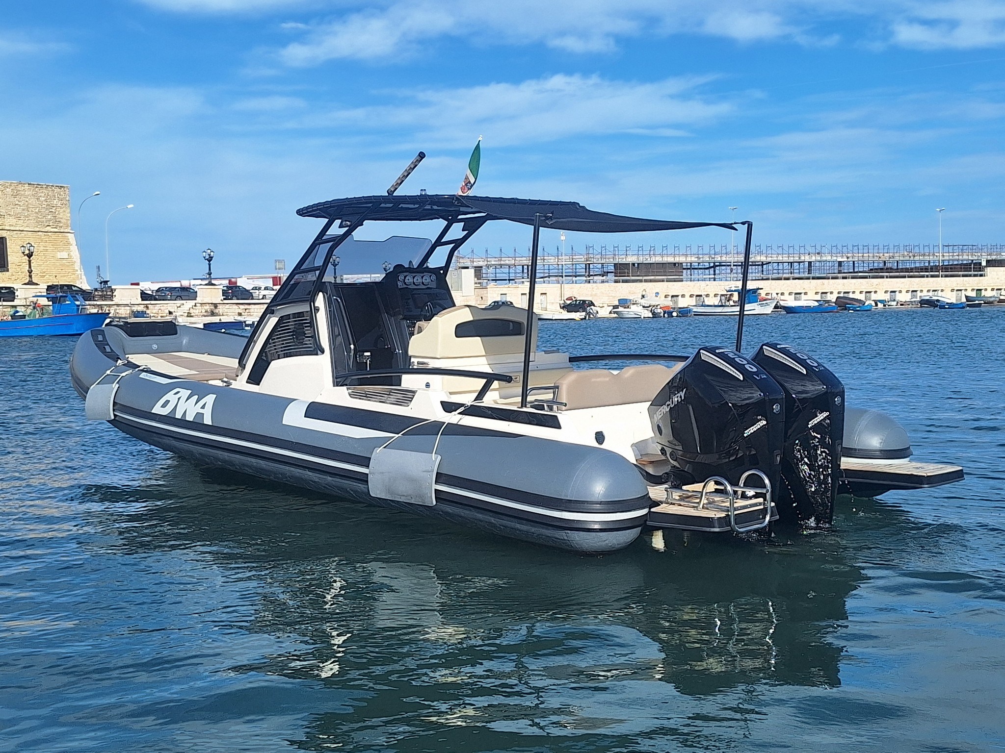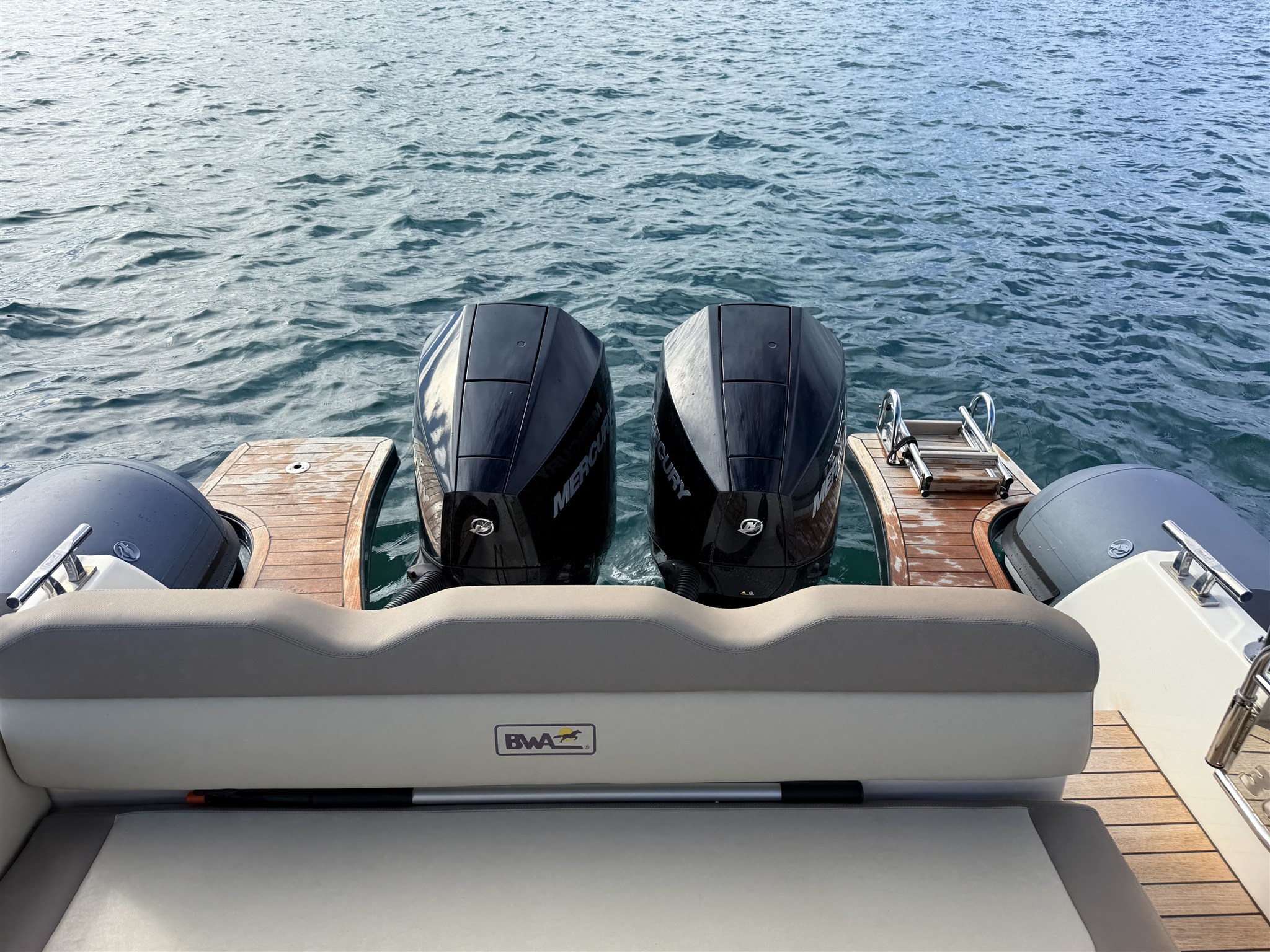 BWA 30 Premium from 2024 in mint condition, powered by 2 200 HP Mercurys with only 32 hours of operation.