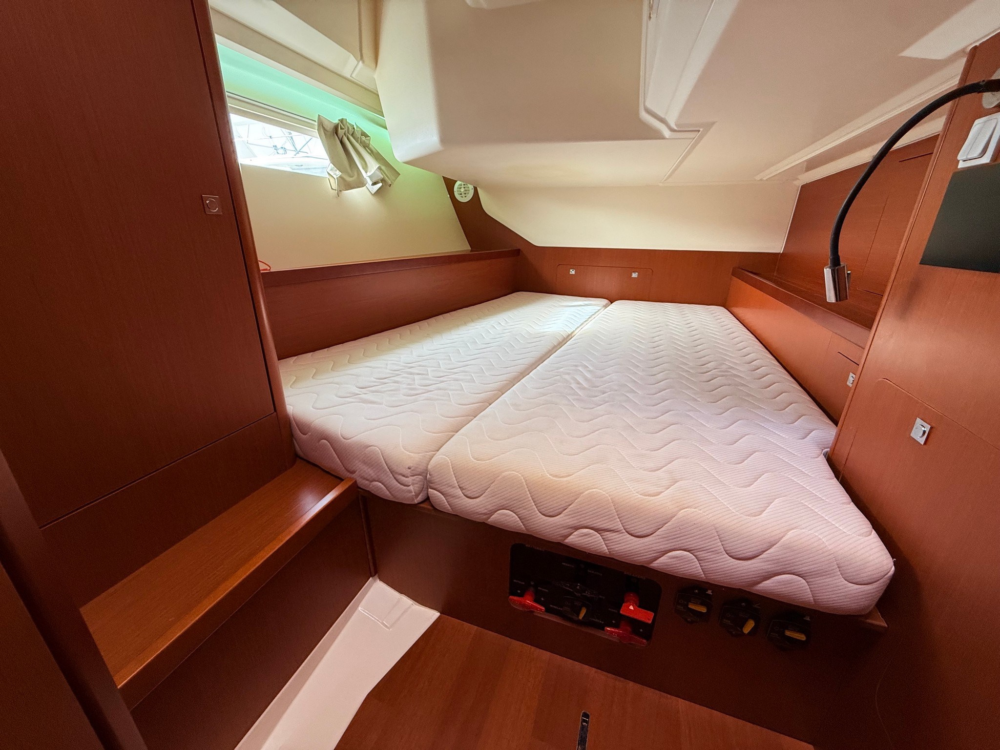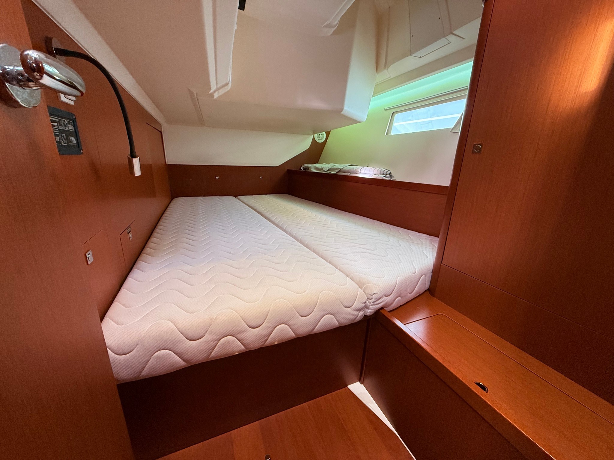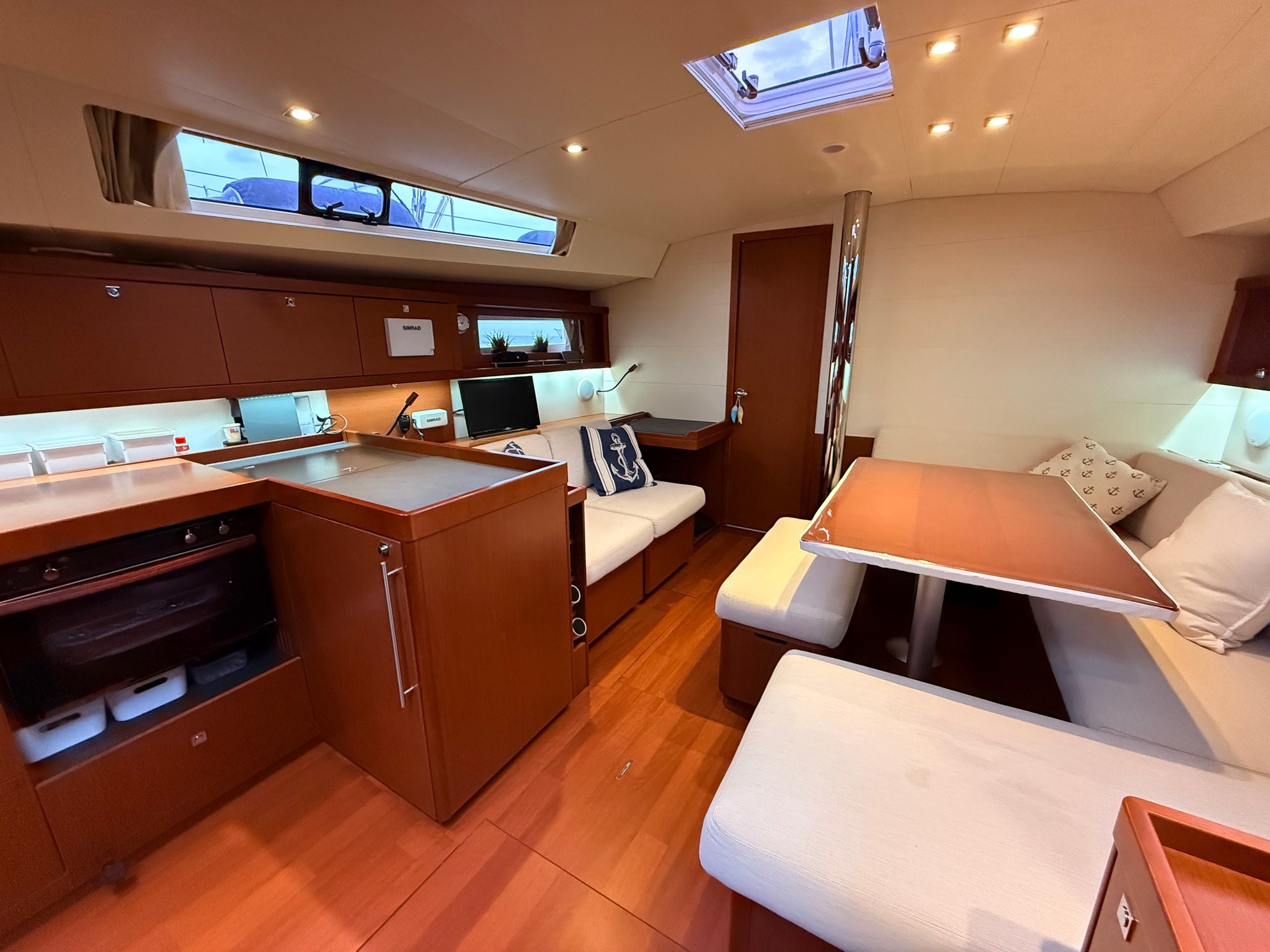 Yanmar 54 HP engine, reduced consumption and maximum reliability. Bright interior with large dinette, full galley, master cabin forward with en-suite bathroom and two twin cabins aft. Very large cockpit, ideal for outdoor living.