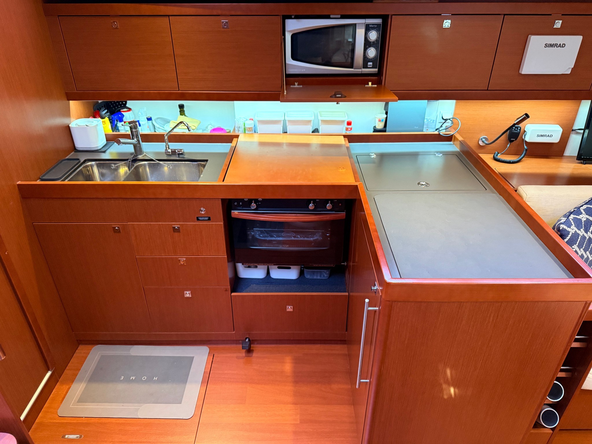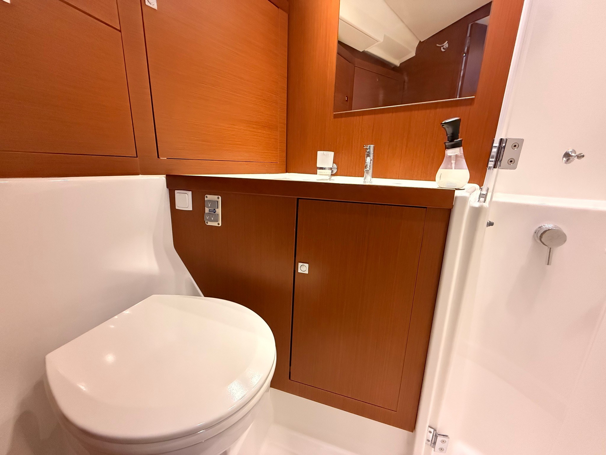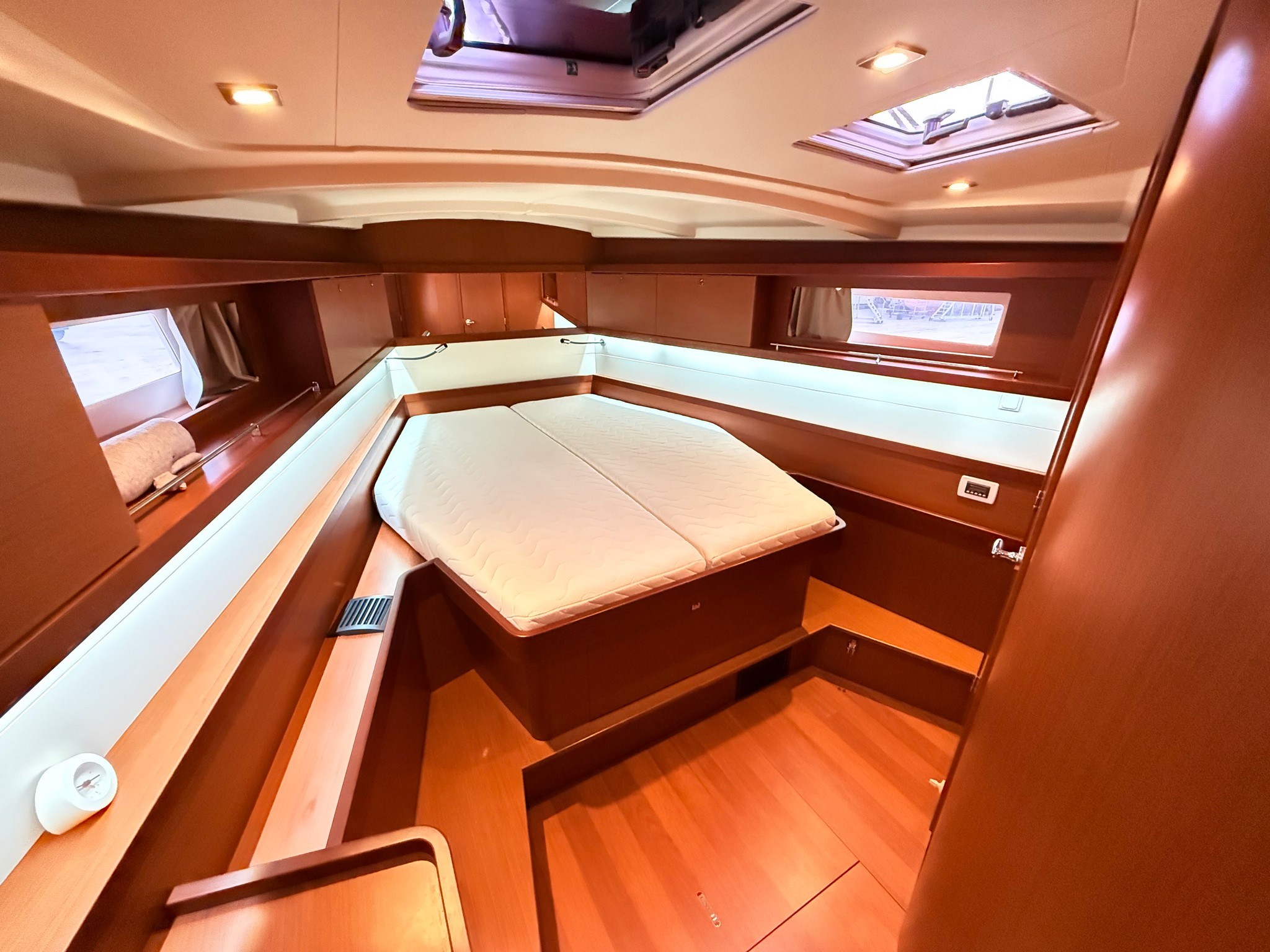 Yanmar 54 HP engine, reduced consumption and maximum reliability. Bright interior with large dinette, full galley, master cabin forward with en-suite bathroom and two twin cabins aft. Very large cockpit, ideal for outdoor living.