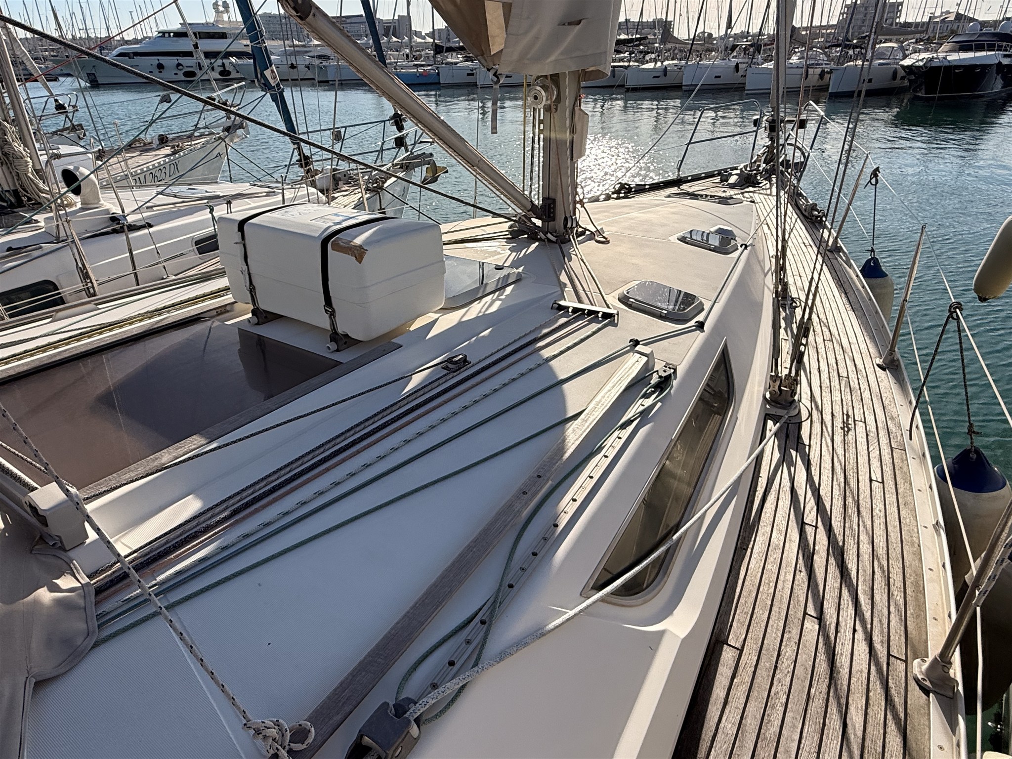 Alarma motor Ancla (ROCNA 25 KG) Bañera en teca Baterías Bomba de achique eléctrica Bomba de achique manual Bomba de agua dulce Cable de corriente de puerto Cargador de batería Cubierta de teca Defensas Ducha externa Eje de respeto Escalera de baño mesa de bañera Molinete eléctrico Pasillos laterales en teca Puerta de entrada Strand aparejo (2023) Toma de 220V para el puerto Winch |