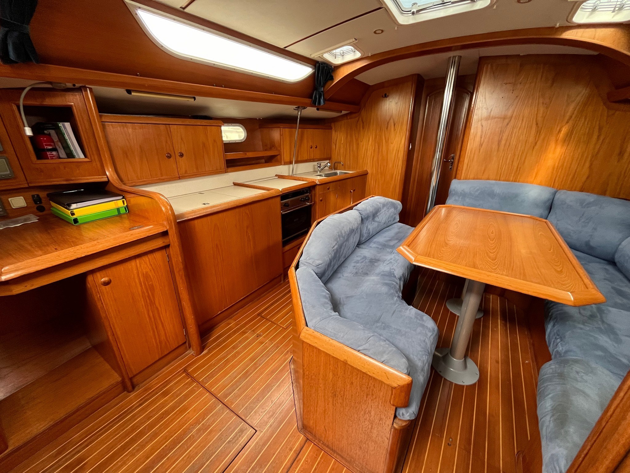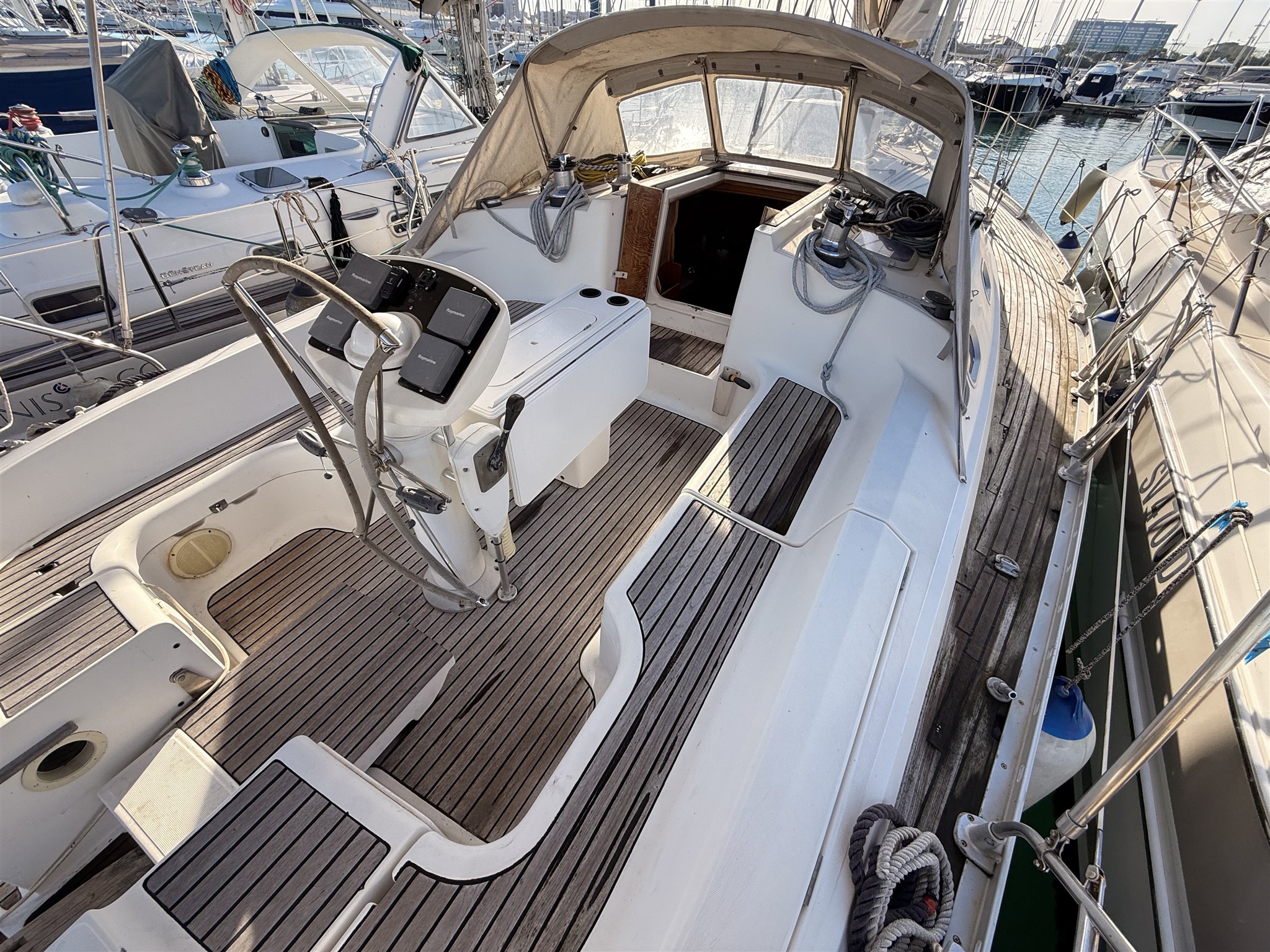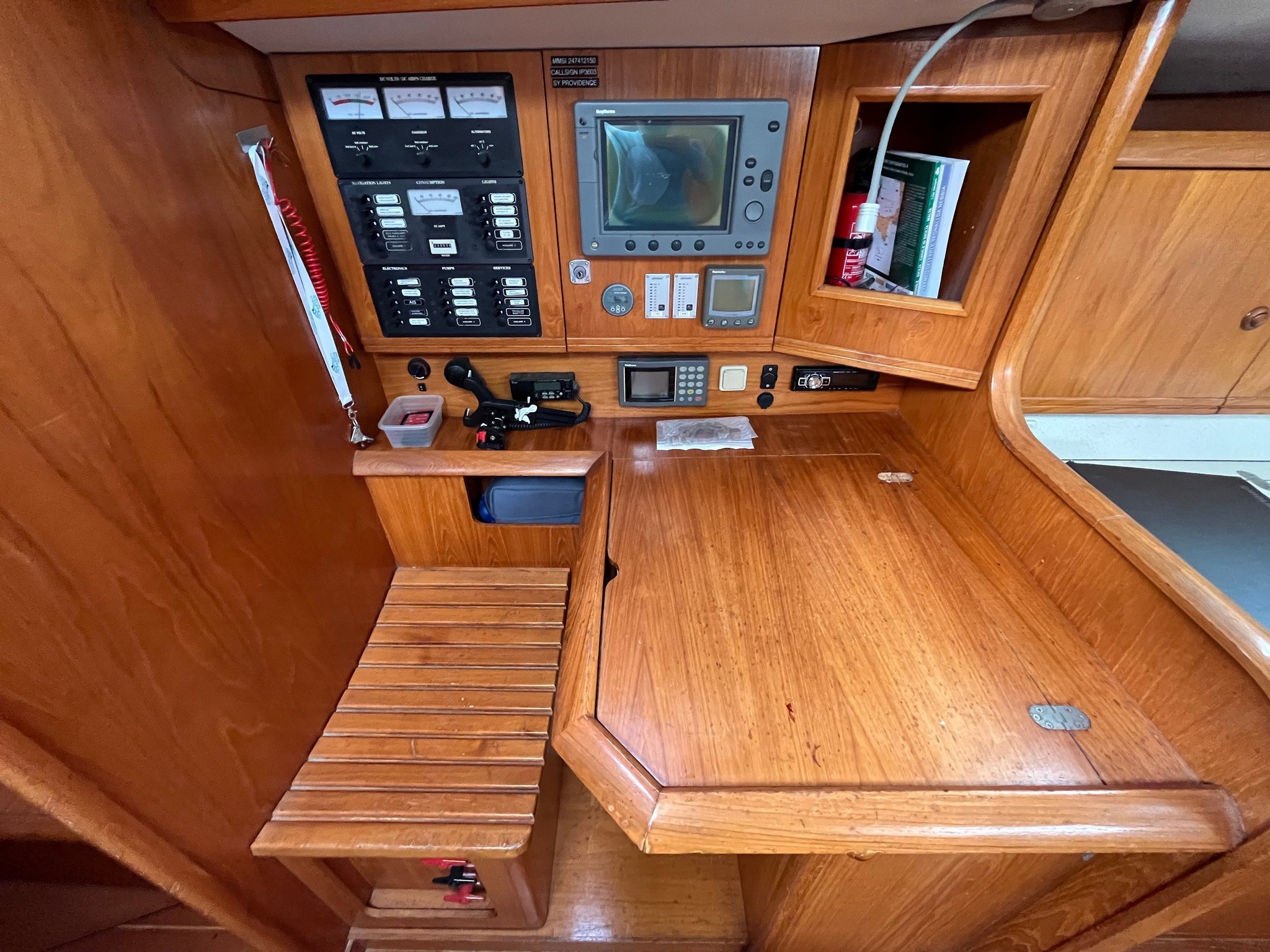 AIS Compás (PLASTIMO) Corredera Cuenta millas (RAYMARINE) Equipo de viento (RAYMARINE) GPS (RAYMARINE) Luces de navegación Ordenador de abordo (MINIPLEX) Pantalla (RAYMARINE) Piloto automático (RAYMARINE) Radio VHF (ICOM) Sonda |