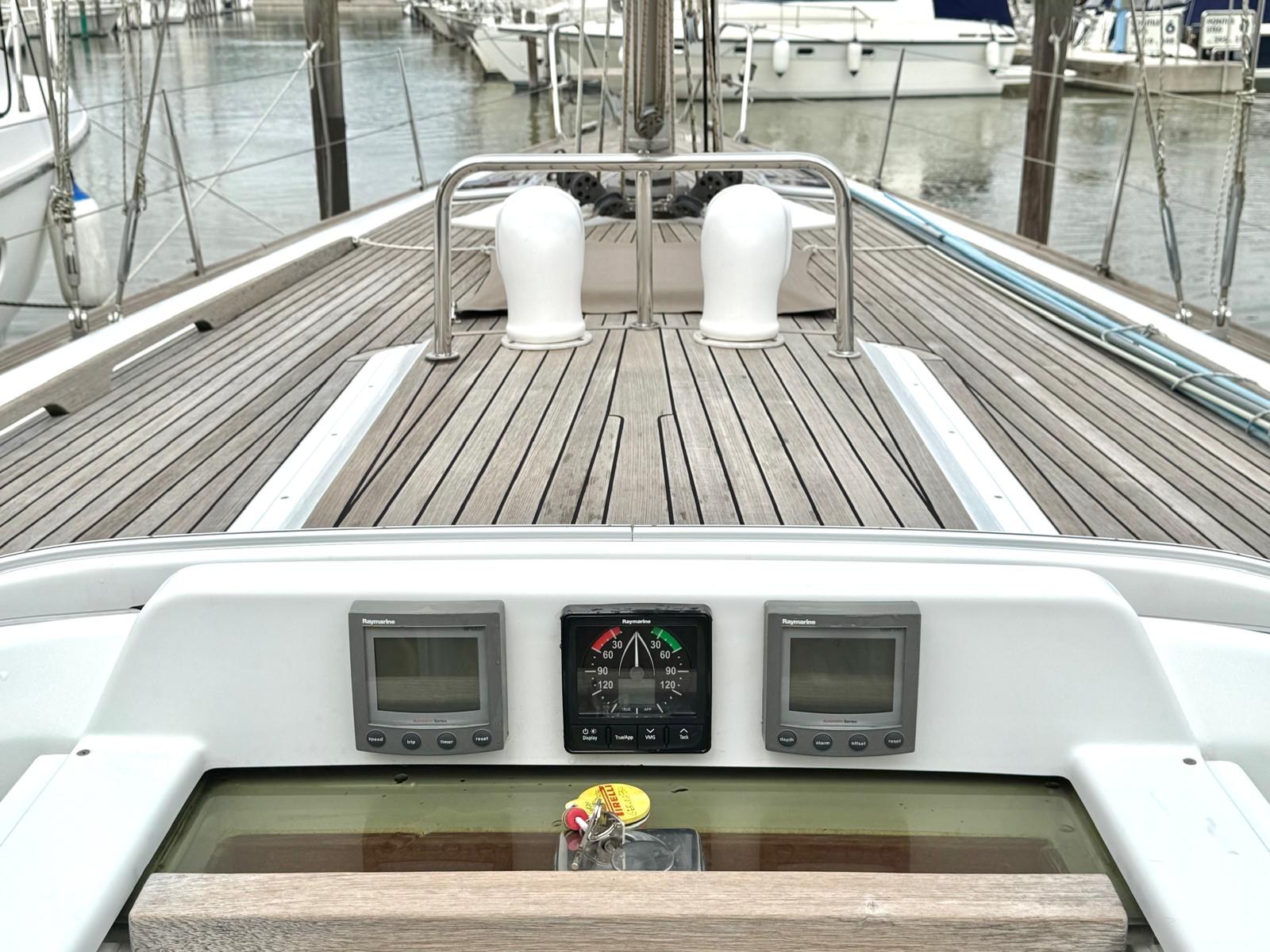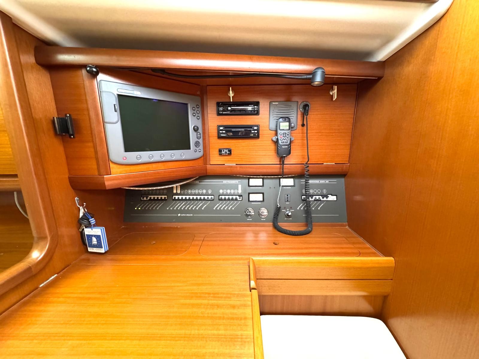 Angolo barra Bussola Contamiglia (Raymarine) 3 x Display (Raymarine ST 60) Ecoscandaglio (Raymarine) Log (Raymarine) Pilota automatico (Raymarine ST 6001) 2 x Plotter con antenna GPS (Raymarine C 120 interno, Raymarine 7" amovibile) Radio VHF (Raymarine) Stazione vento (Raymarine) |