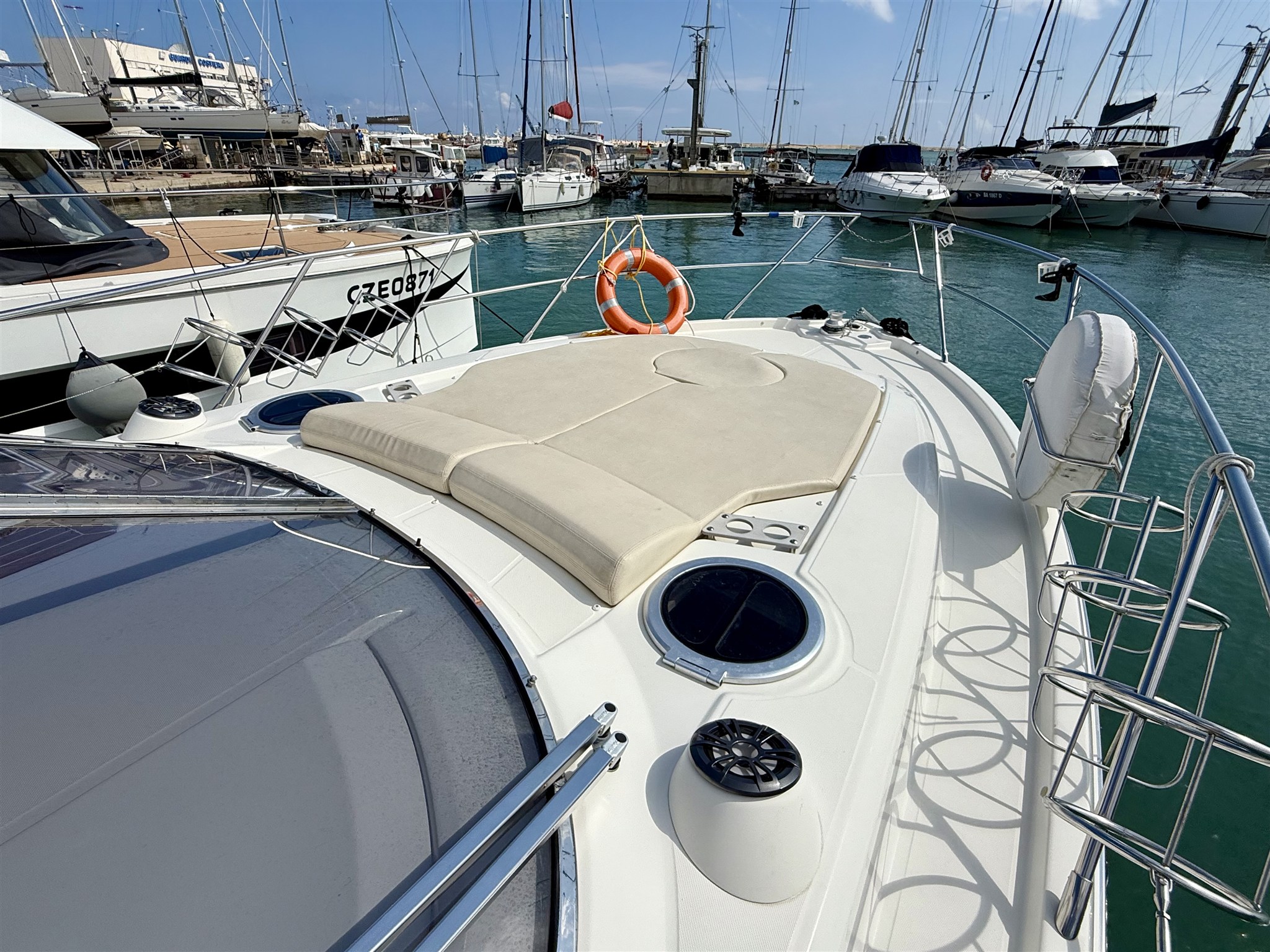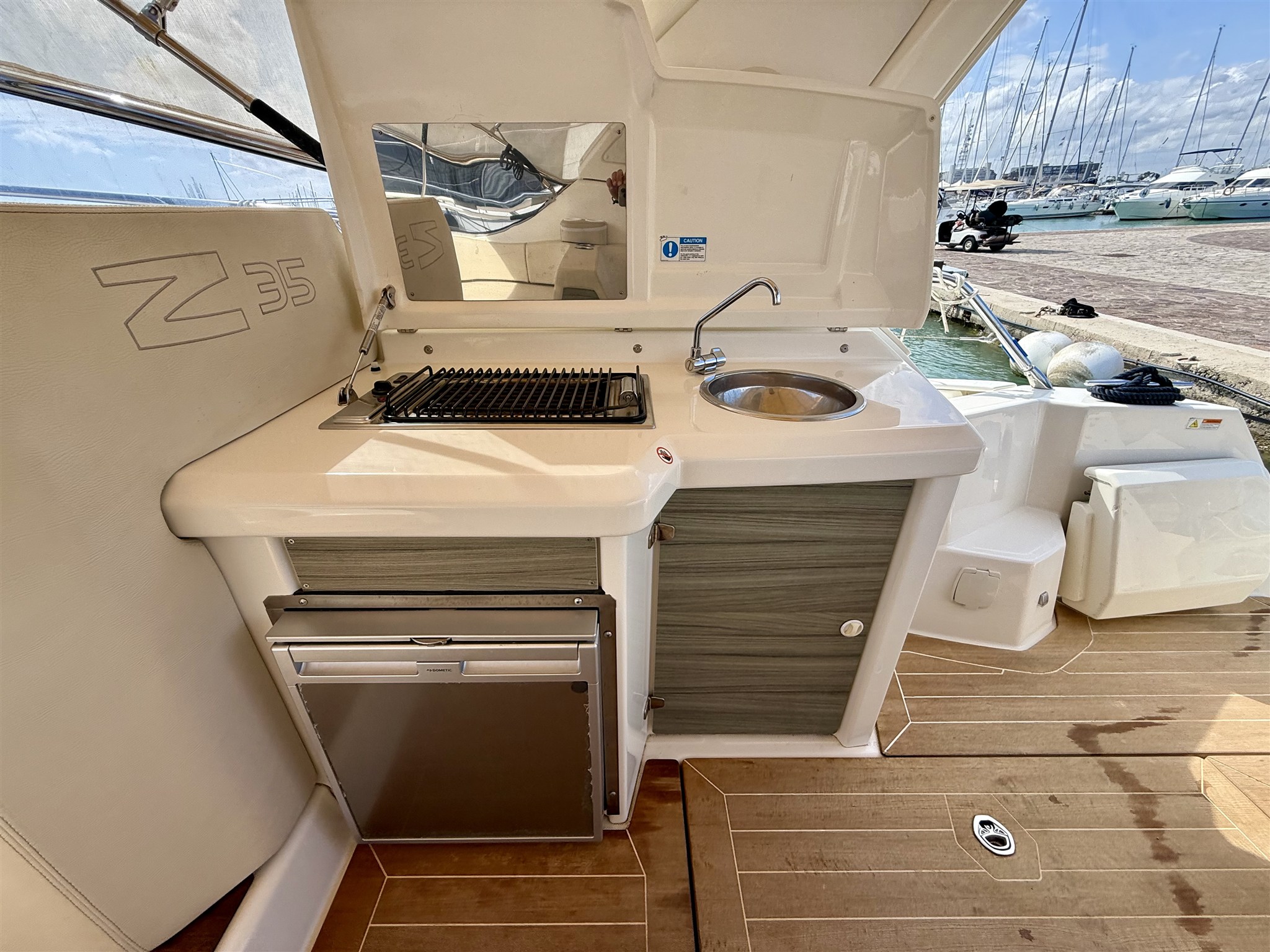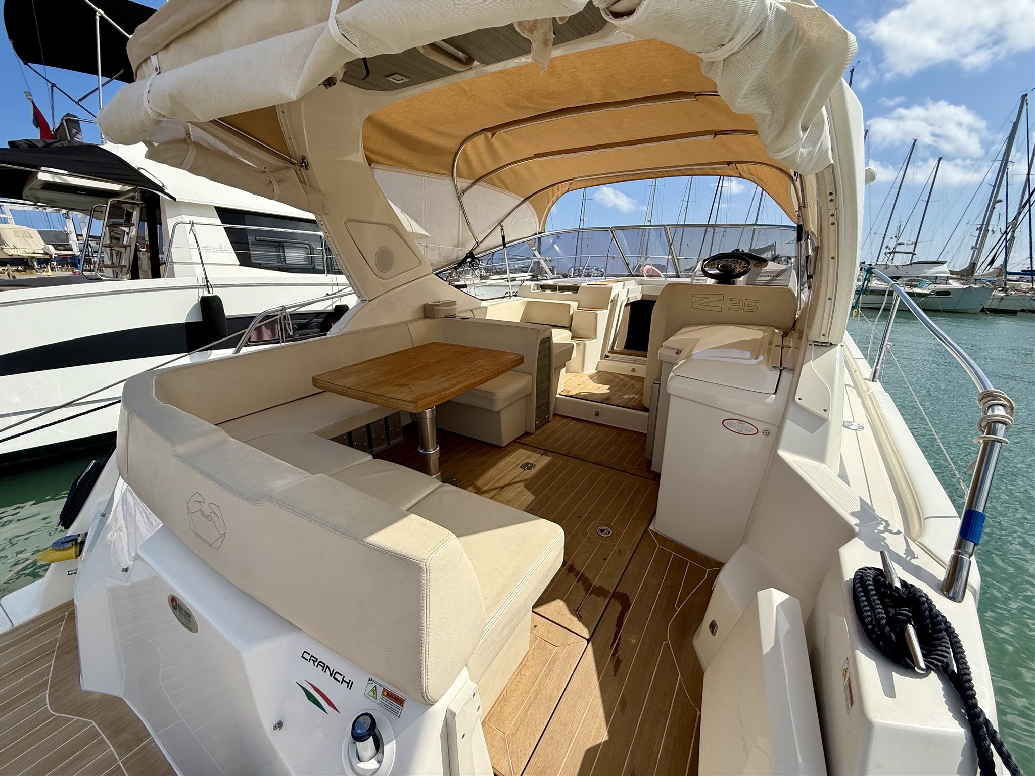 Ancora (15 KG) Autoclave Batterie Caricabatterie Cavo corrente di banchina Doccia esterna Elica di prua - bow thruster (SIDEPOWER) Flap idraulici Lavandino nel Pozzetto Luci di cortesia Parabordi Piattaforma Pompa di sentina elettrica Pompa di sentina manuale Porta ingresso Pozzetto Teak Presa 220V banchina Presa acqua banchina Salpa Ancore Elettrico Scaletta da bagno Tavolo pozzetto Tavolo Salone Abbattibile |