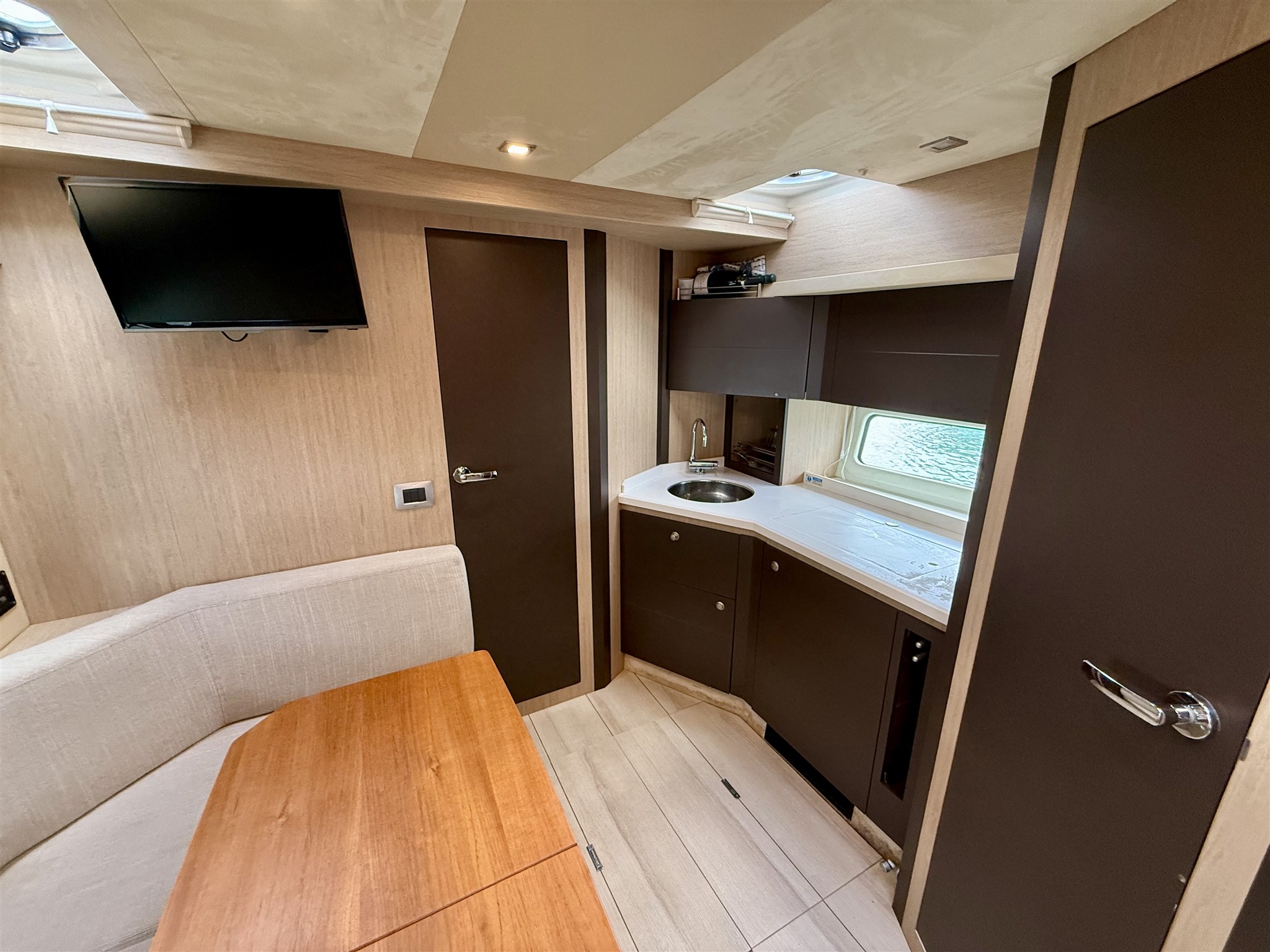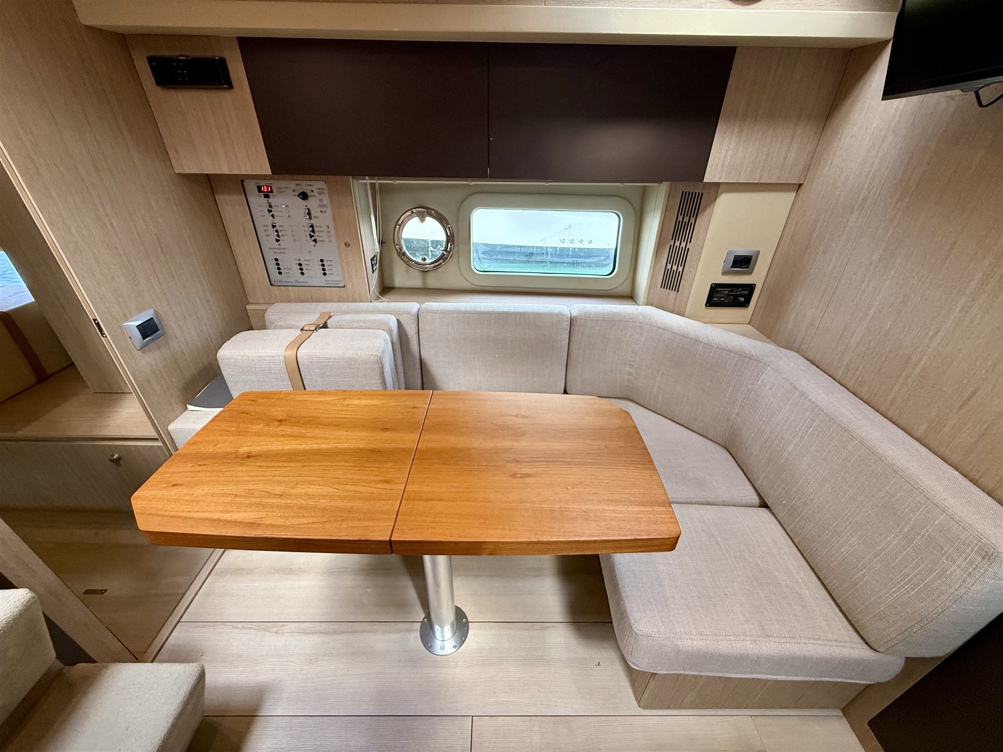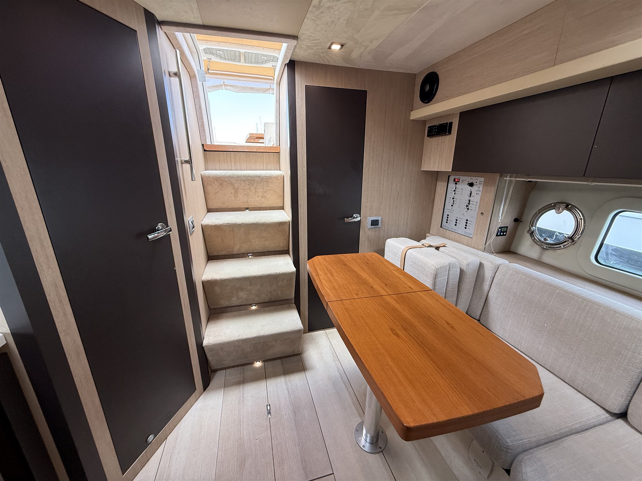 Acqua Calda Aria condizionata BBQ/ Grill Boiler Clima reversibile Indicatore della temperatura del motore Inverter Pavimento interno in legno Prese interne 12v Prese interne 220v WC marino manuale |