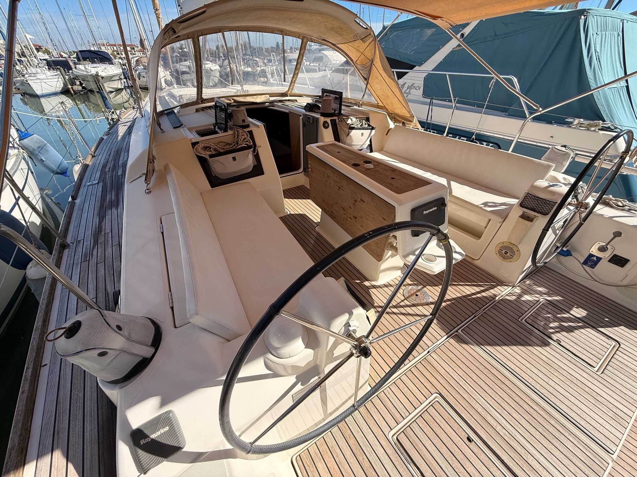 AIS Bussola Display (RAYMARINE) GPS (RAYMARINE HYBRID TOUCH) Log Luci di navigazione Pilota automatico (RAYMARINE) Plotter con antenna GPS Radio VHF (RAYMARINE)