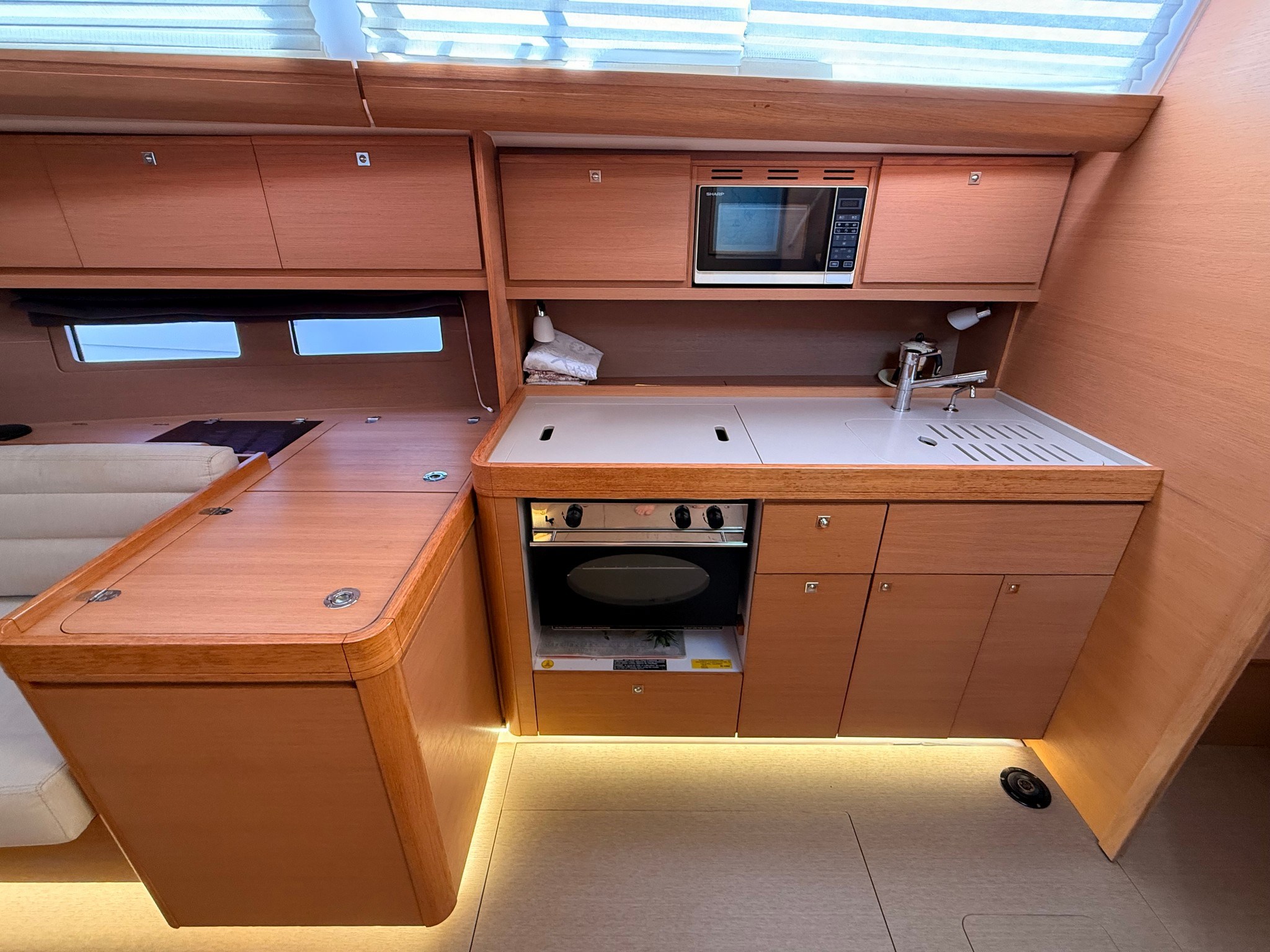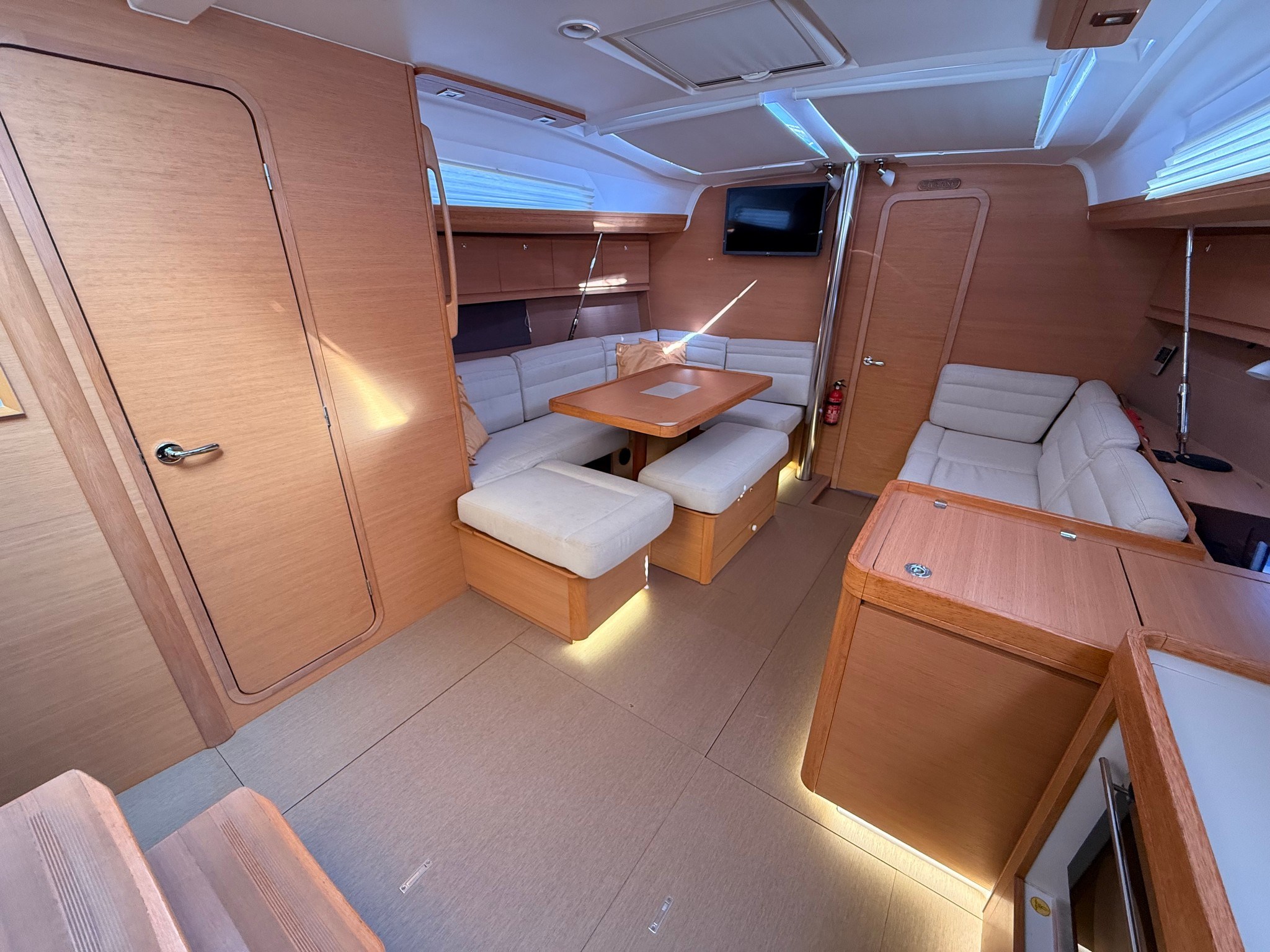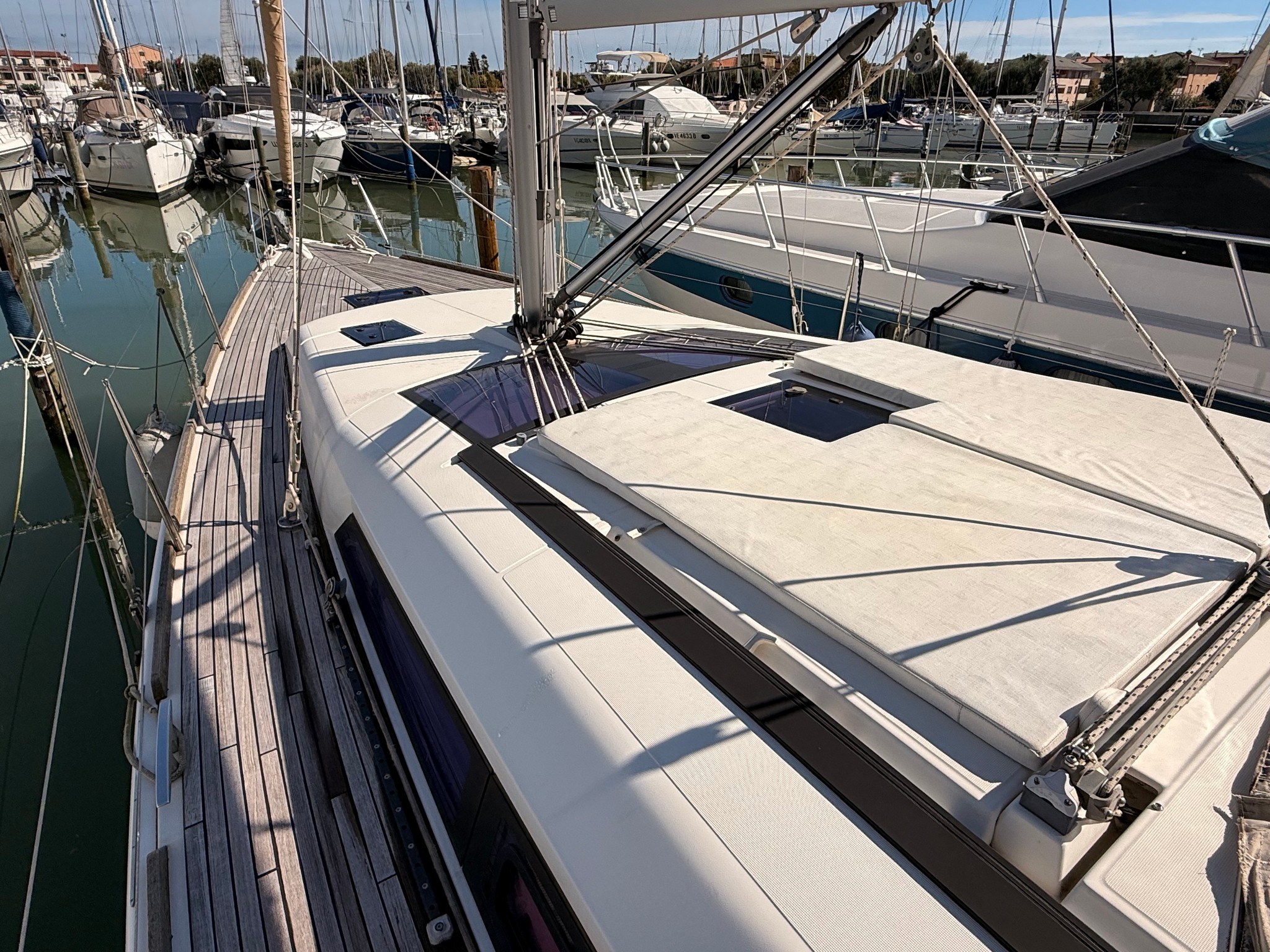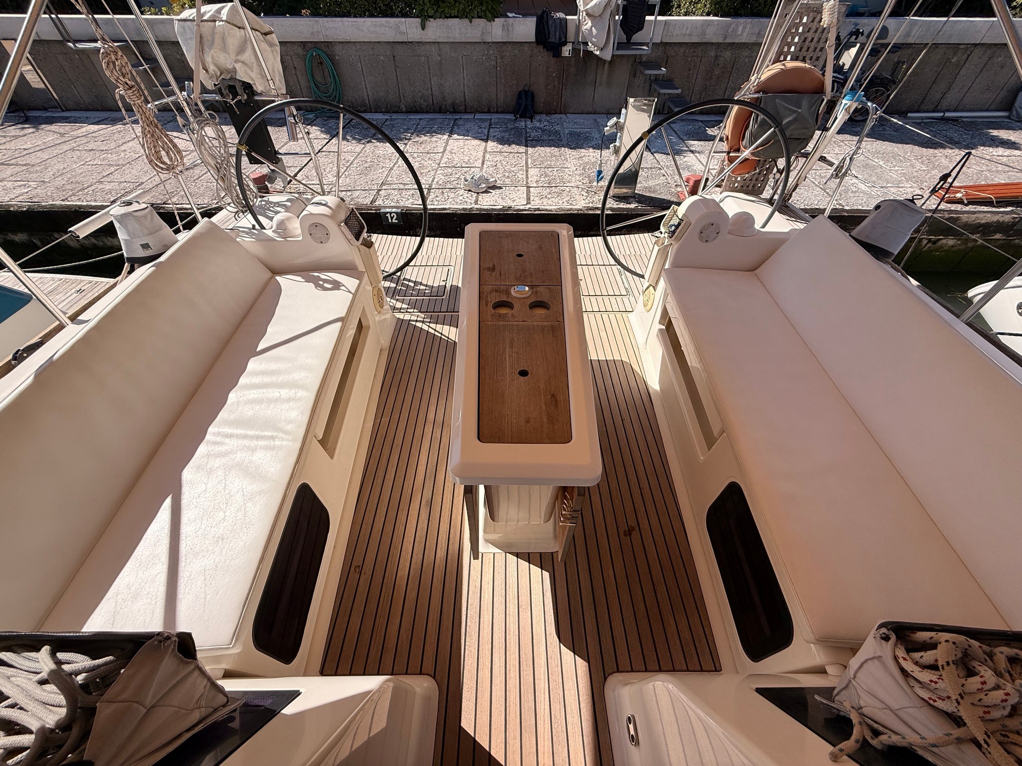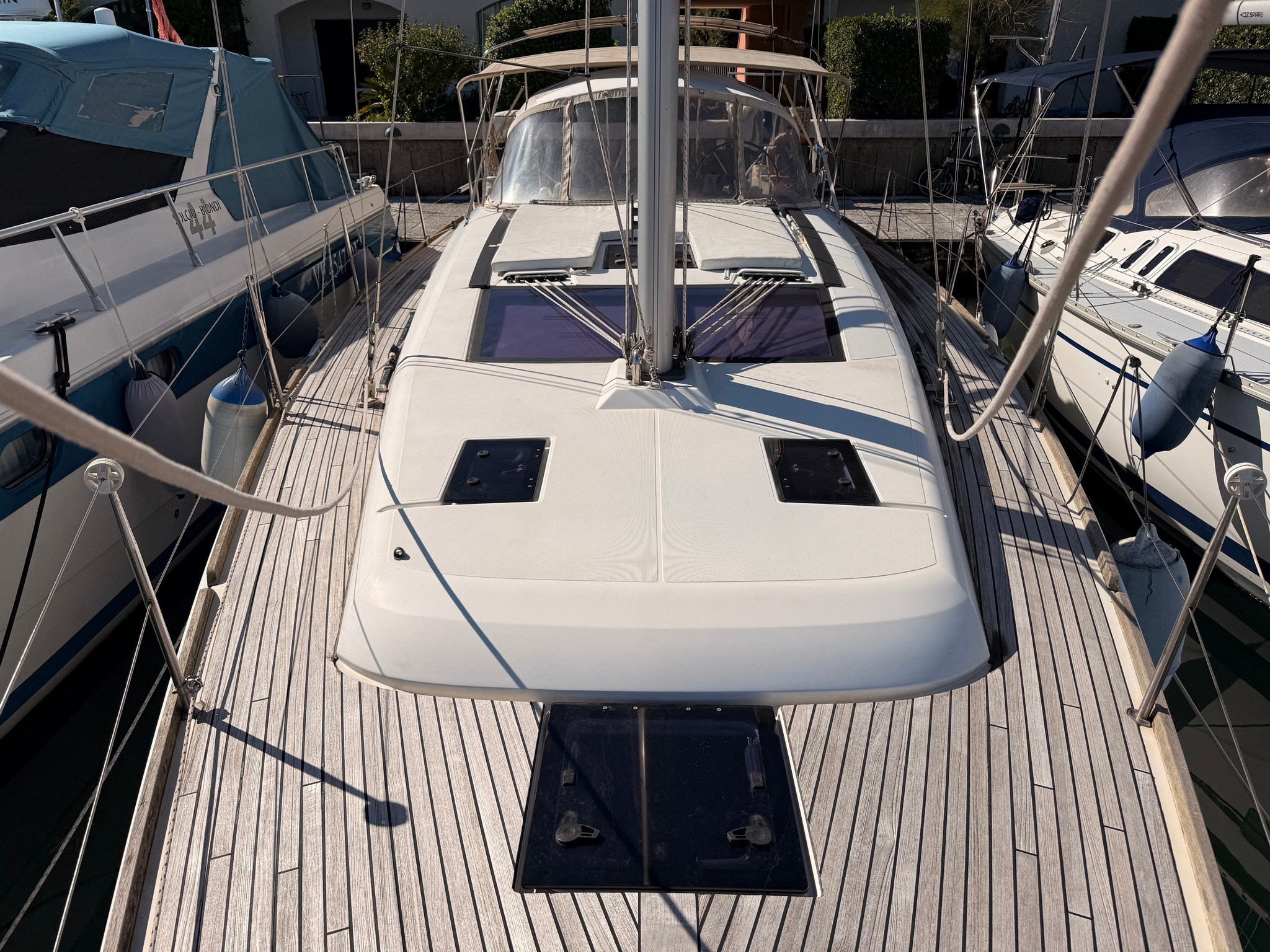 Ancora Autoclave Batterie Camminamenti laterali in teak 2 x Caricabatterie Doccia esterna Doppia timoneria Elica di prua - bow thruster Parabordi Passerella Piattaforma Pompa di sentina elettrica Pompa di sentina manuale Porta ingresso Pozzetto Teak Presa 220V banchina Salpa Ancore Elettrico Sartiame spiroidale Tavolo pozzetto Tavolo Salone Abbattibile 3 x Winch Winch Elettrico