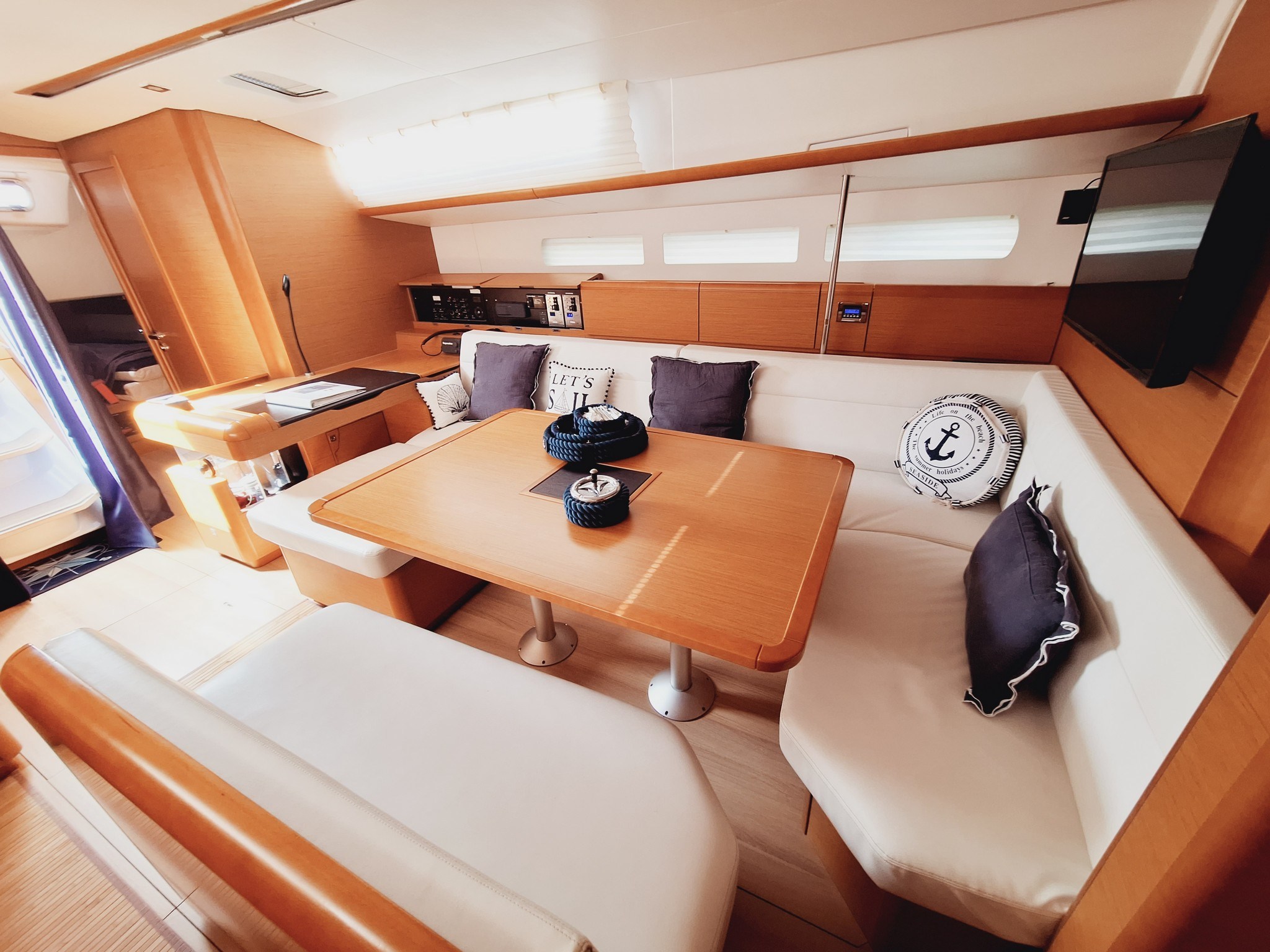 Interni luminosi e curati, con 3 cabine e 3 bagni, grande dinette e cucina completa. Imbarcazione con IVA pagata, costantemente manutenuta e subito disponibile.