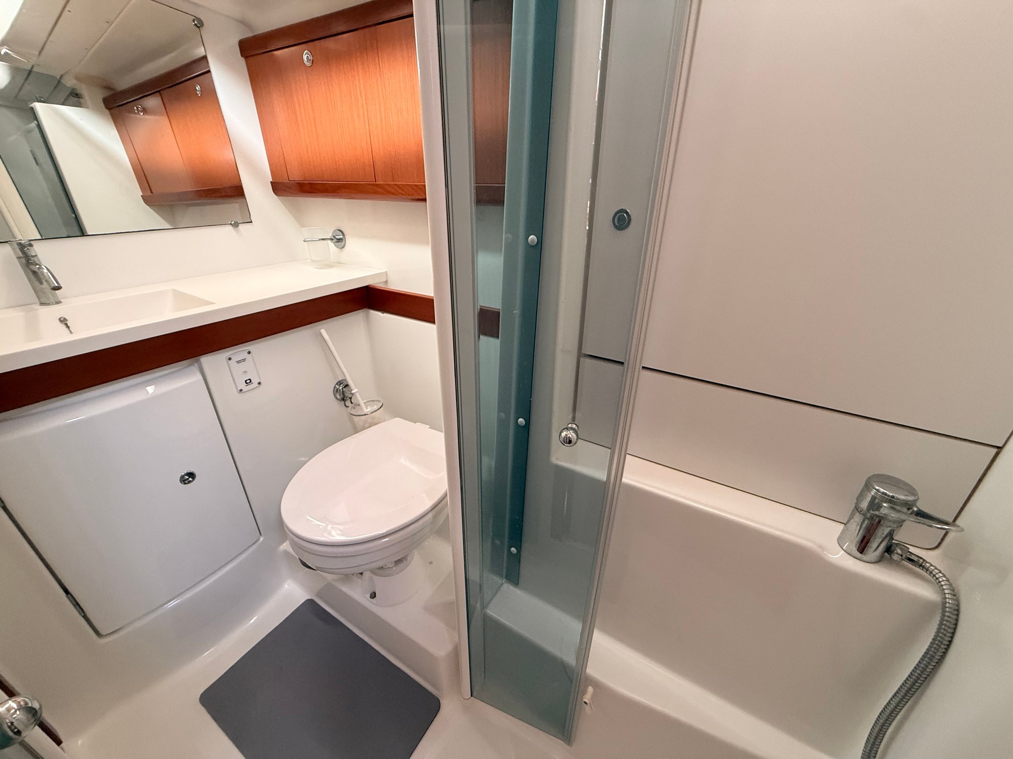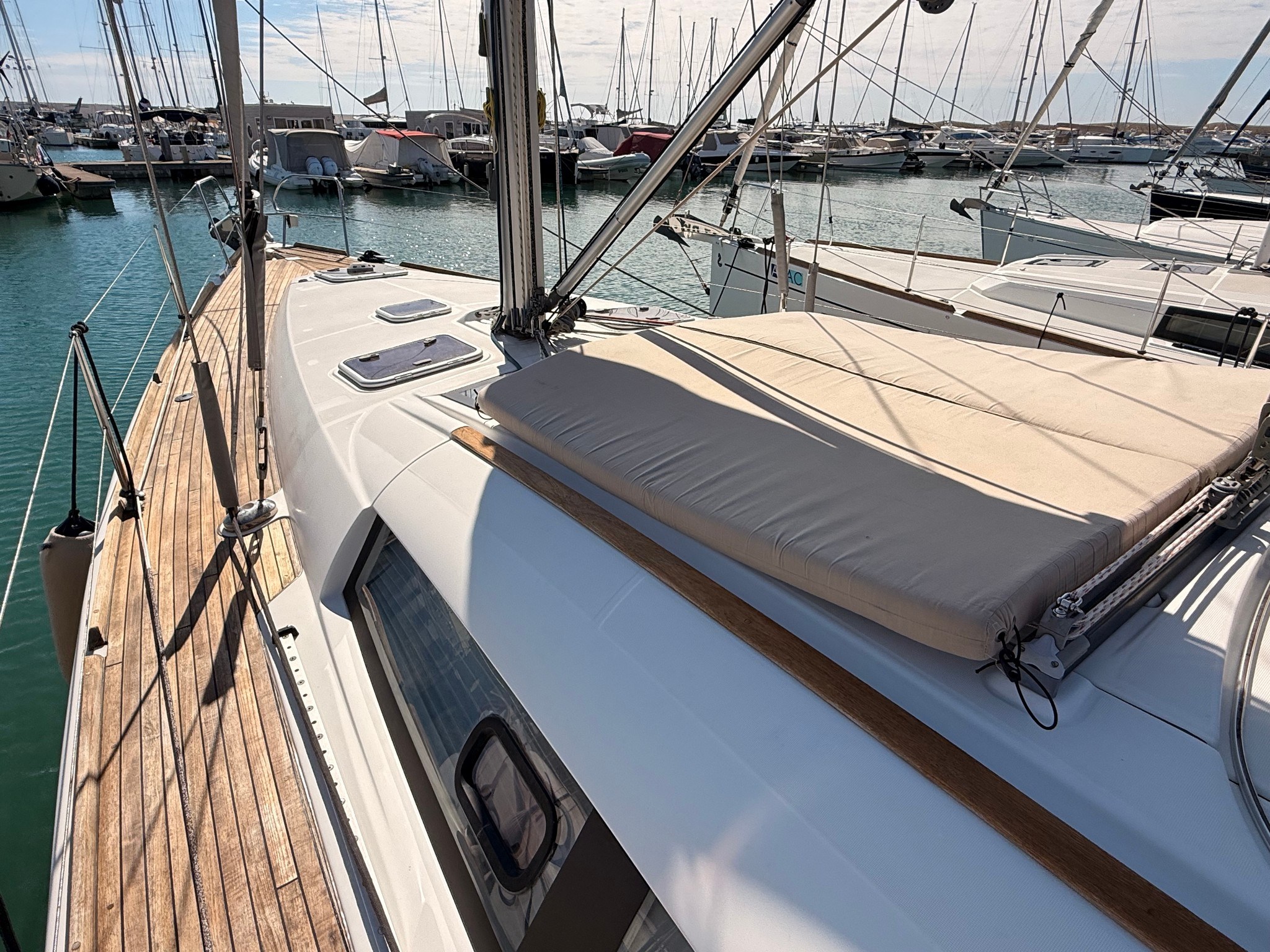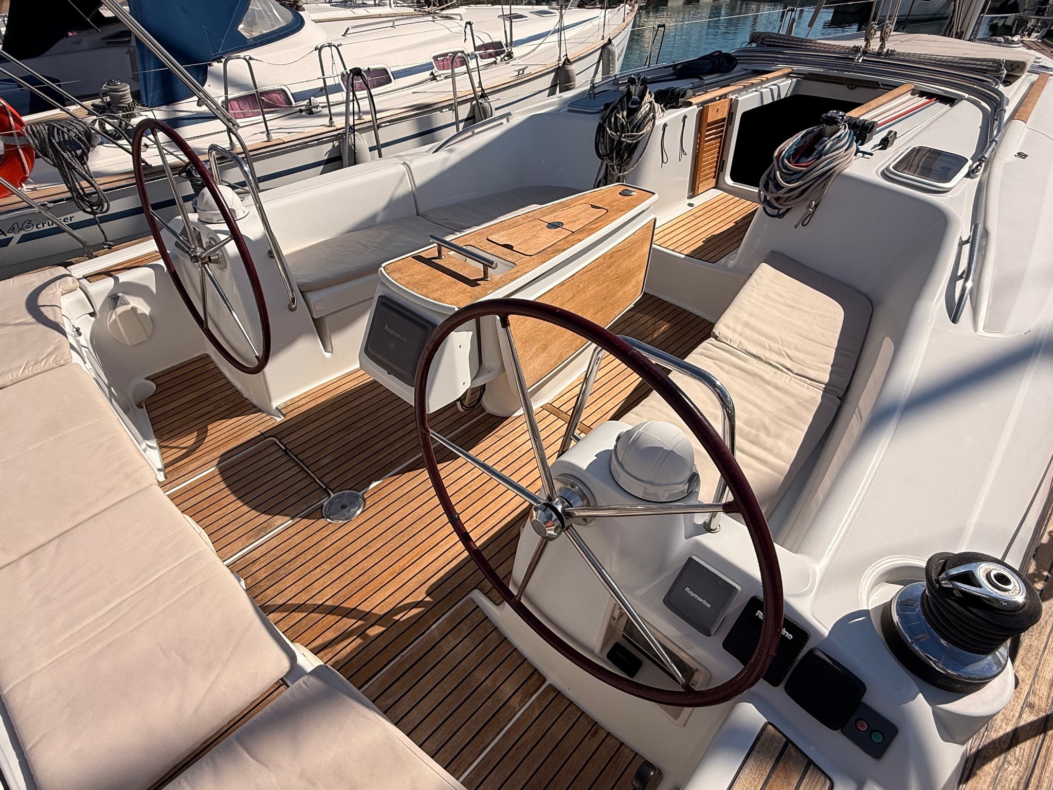 Autoclave Batterie Camminamenti laterali in teak Caricabatterie Doccia esterna Doppia timoneria Elica di prua - bow thruster Gruette per motore fuoribordo Parabordi Passerella Pompa di sentina elettrica Pompa di sentina manuale Porta ingresso Pozzetto Teak Presa 220V banchina Salpa Ancore Elettrico Sartiame in tondino Scaletta da bagno Tavolo pozzetto Winch Winch Elettrico |