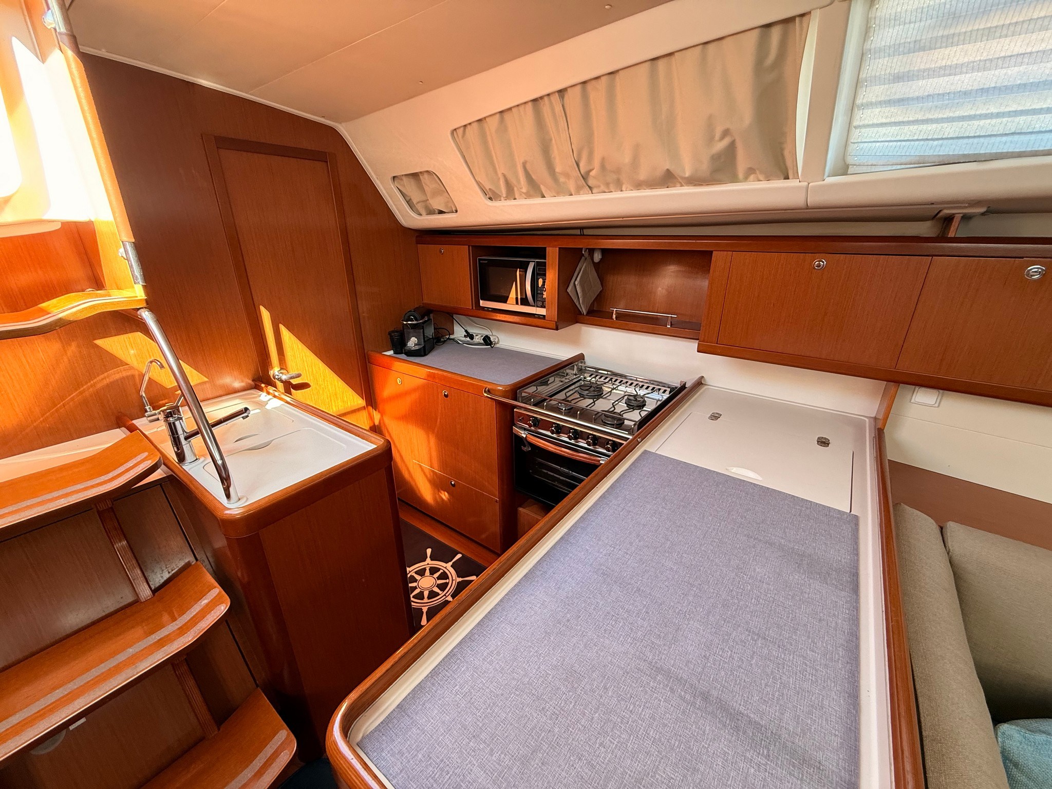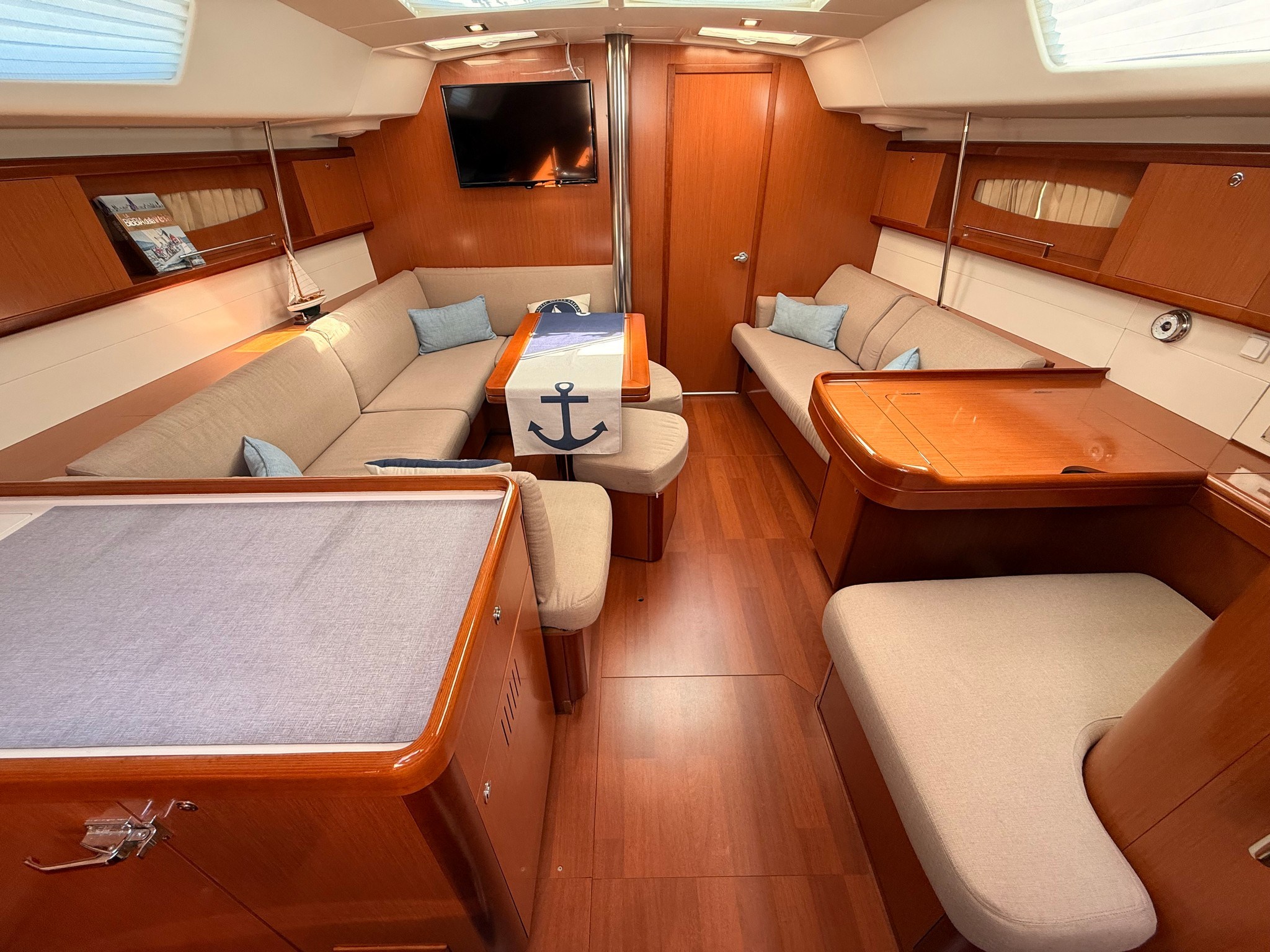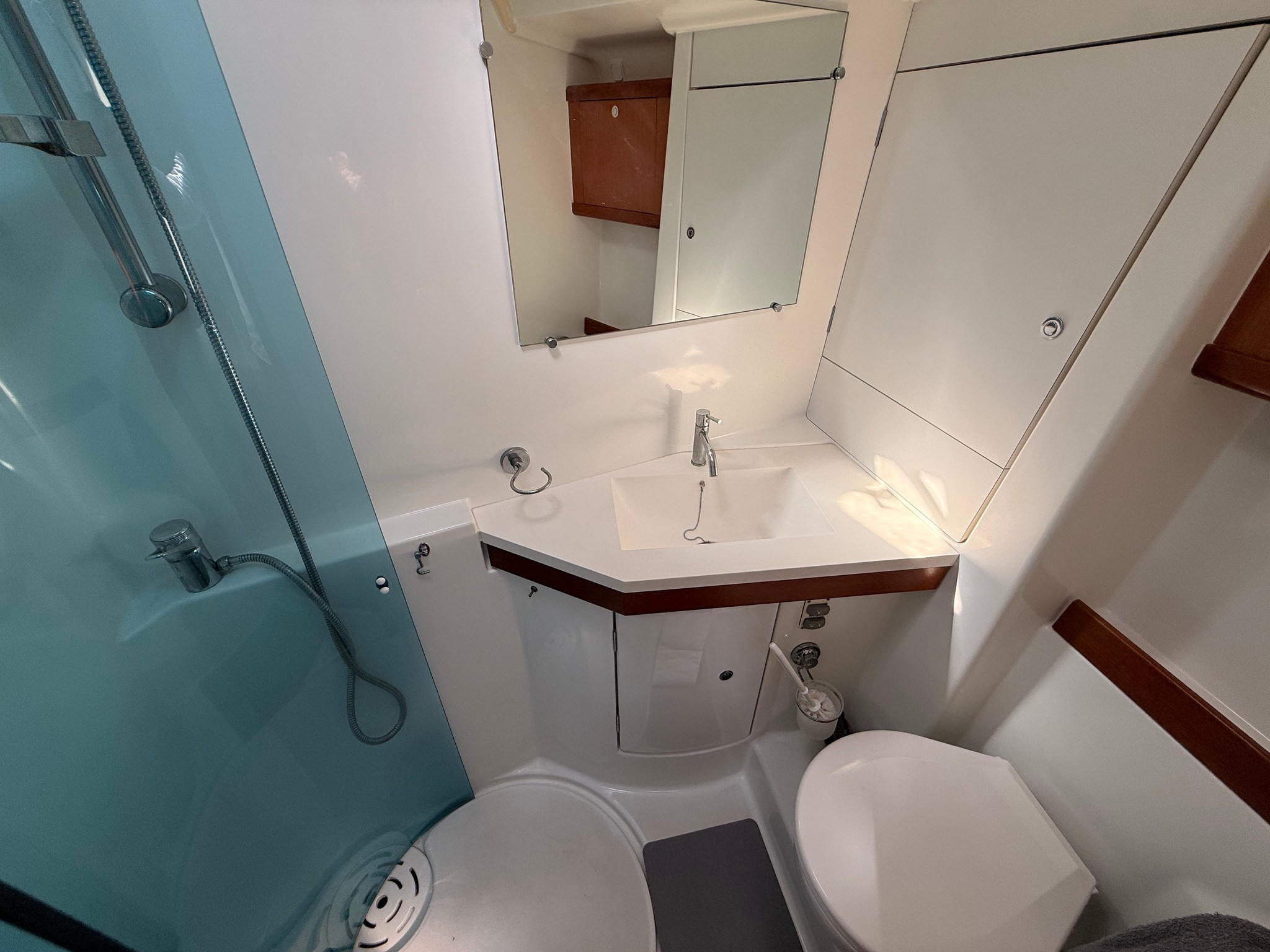 Autoclave Batterie Camminamenti laterali in teak Caricabatterie Doccia esterna Doppia timoneria Elica di prua - bow thruster Gruette per motore fuoribordo Parabordi Passerella Pompa di sentina elettrica Pompa di sentina manuale Porta ingresso Pozzetto Teak Presa 220V banchina Salpa Ancore Elettrico Sartiame in tondino Scaletta da bagno Tavolo pozzetto Winch Winch Elettrico |