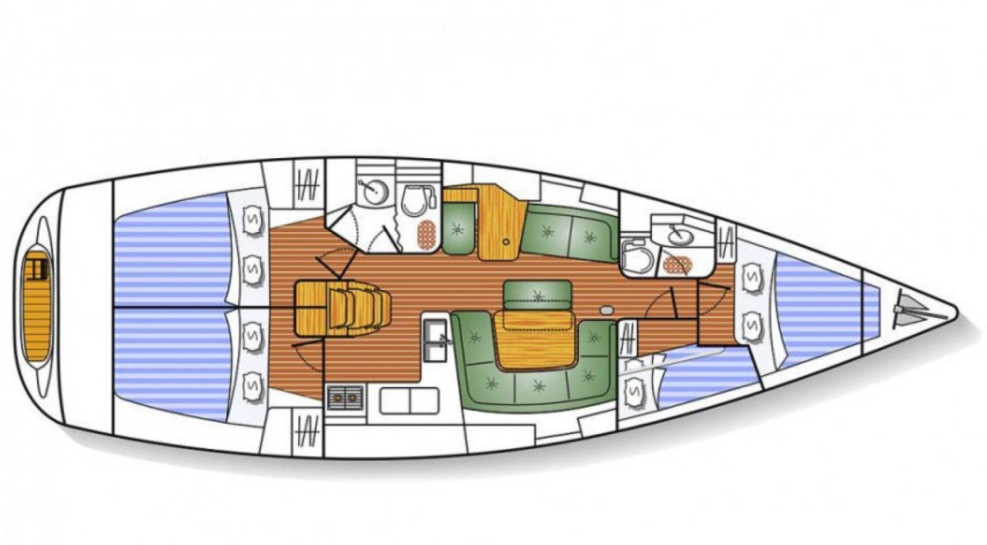 Jeanneau Sun Odyssey 43 in versione 4 cabine trasformabile in 3, accessoriata con elettronica completa Raymarine.