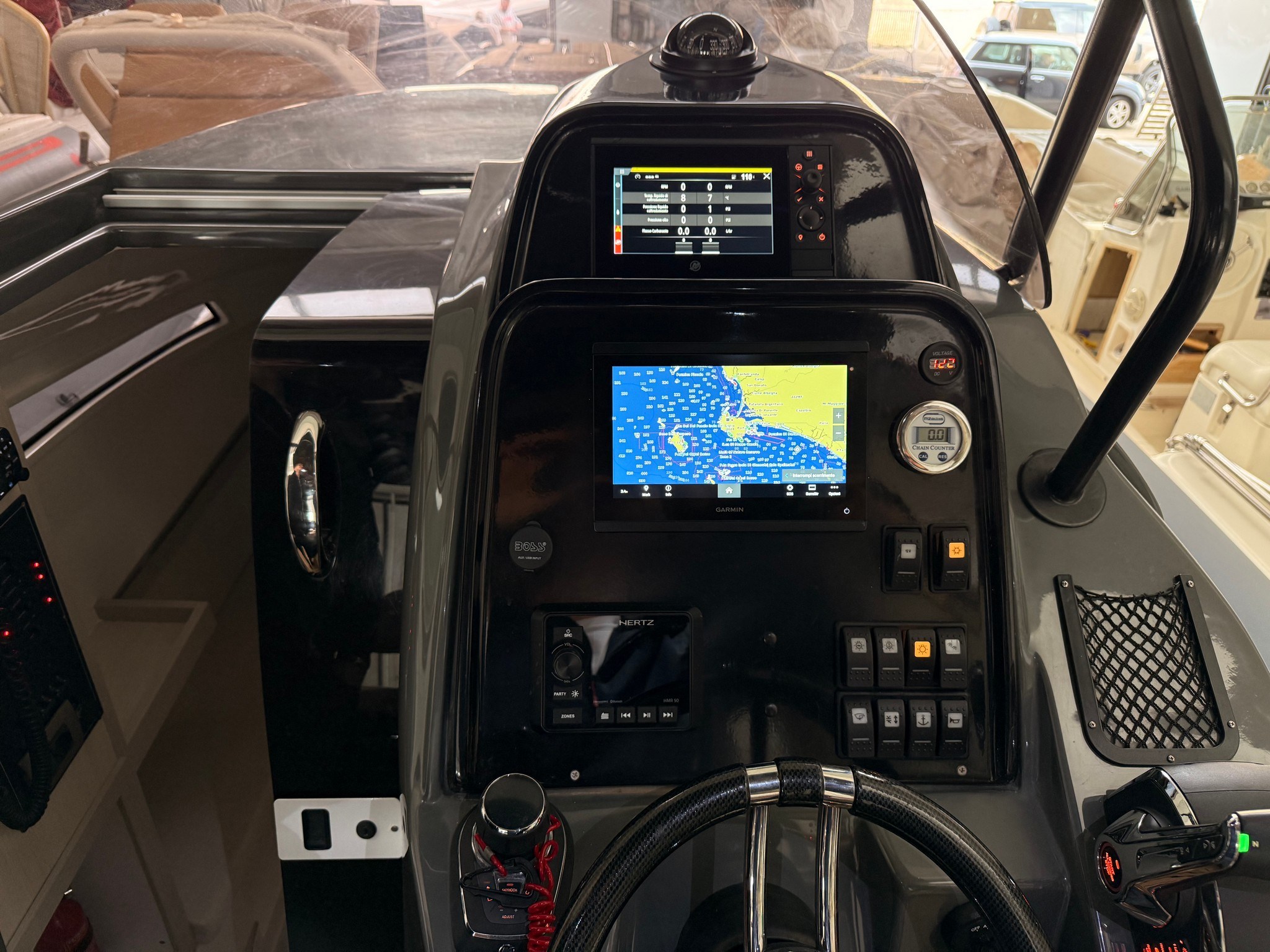 Autopilot (MERCURY) Chain counter (MZ ELECTRONIC) Chartplotter Compass Depth Sounder (GARMIN) GPS (GARMIN 923XSV) Hours Counter Joystick (MERCURY SKYHOOK) Log Navigation lights Odometer On-Board Computer (MERCURY) Tachometer VHF Radio (ICOM) |