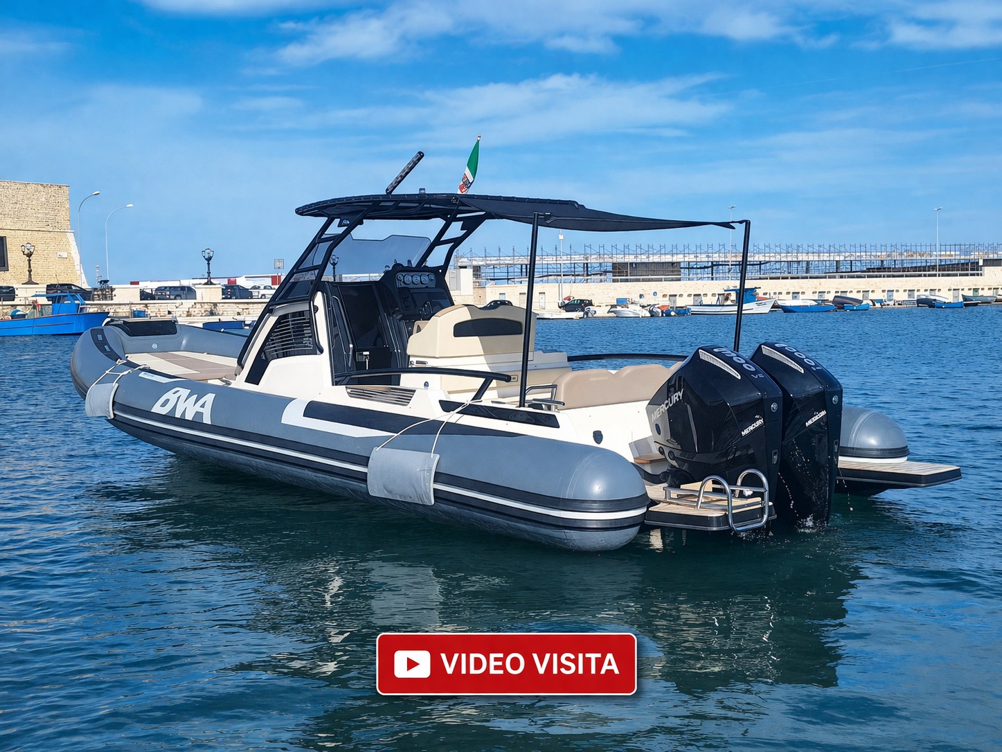 Boat with a sporty and elegant look, in Full Optional configuration, with high-impact equipment thanks to the Impression gray tubulars and the beautiful total black T-Top. Designed to offer comfort, style and performance, it is the ideal solution for those looking for a recent, complete and ready-to-use boat.