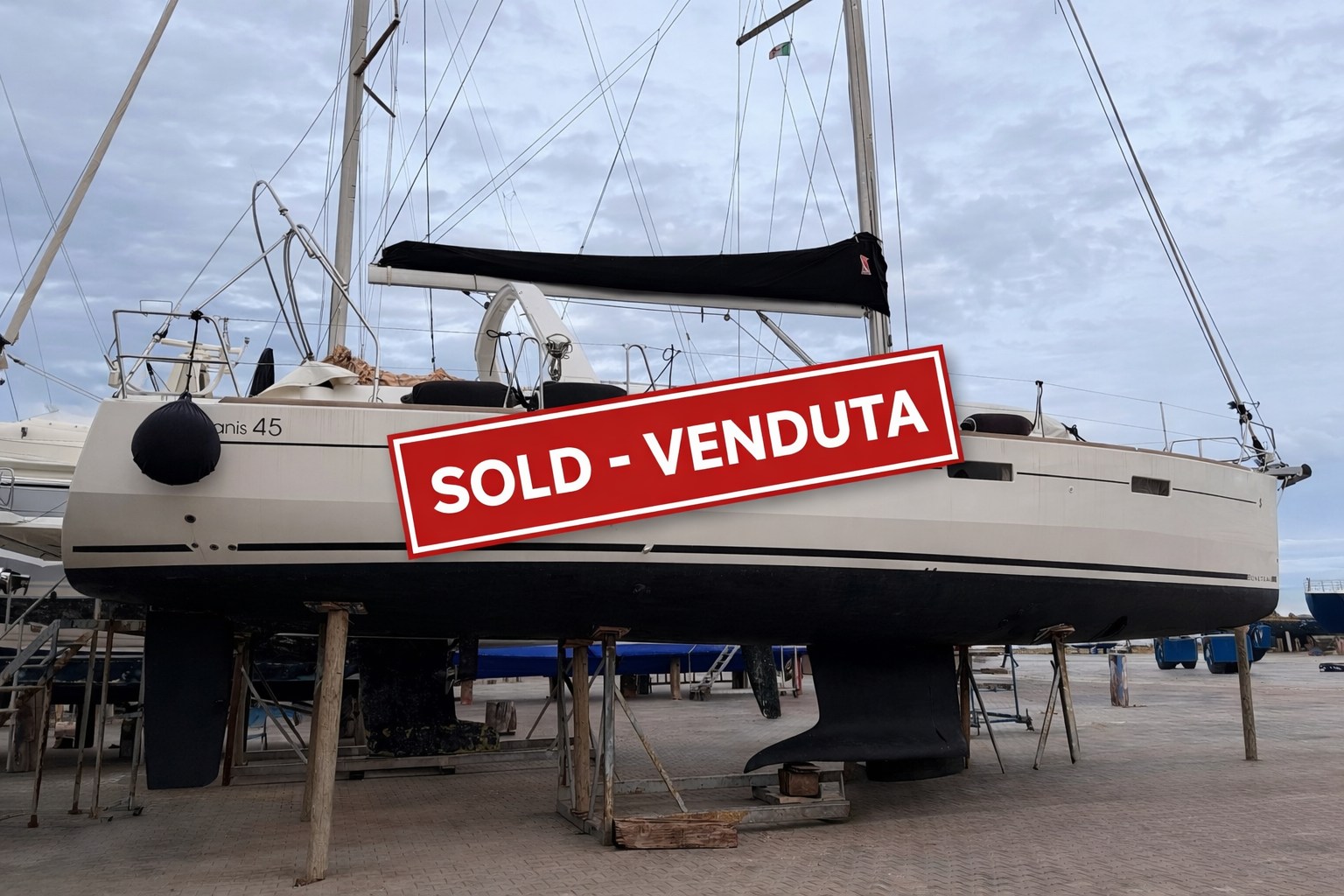 Yanmar 54 HP engine, reduced consumption and maximum reliability. Bright interior with large dinette, full galley, master cabin forward with en-suite bathroom and two twin cabins aft. Very large cockpit, ideal for outdoor living.